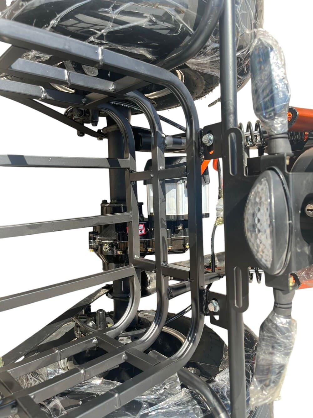 Скутер отличается высокой грузоподъёмностью — до 200 кг, что позволяет использовать его как одному райдеру с пассажиром, так и при перевозке крупного багажа. Установлены регулируемые дисковые тормоза спереди и сзади, обеспечивающие точное и безопасное торможение с возможностью настройки под стиль езды. Колёса диаметром 10 дюймов обеспечивают хорошую маневренность и устойчивость на городских дорогах.
