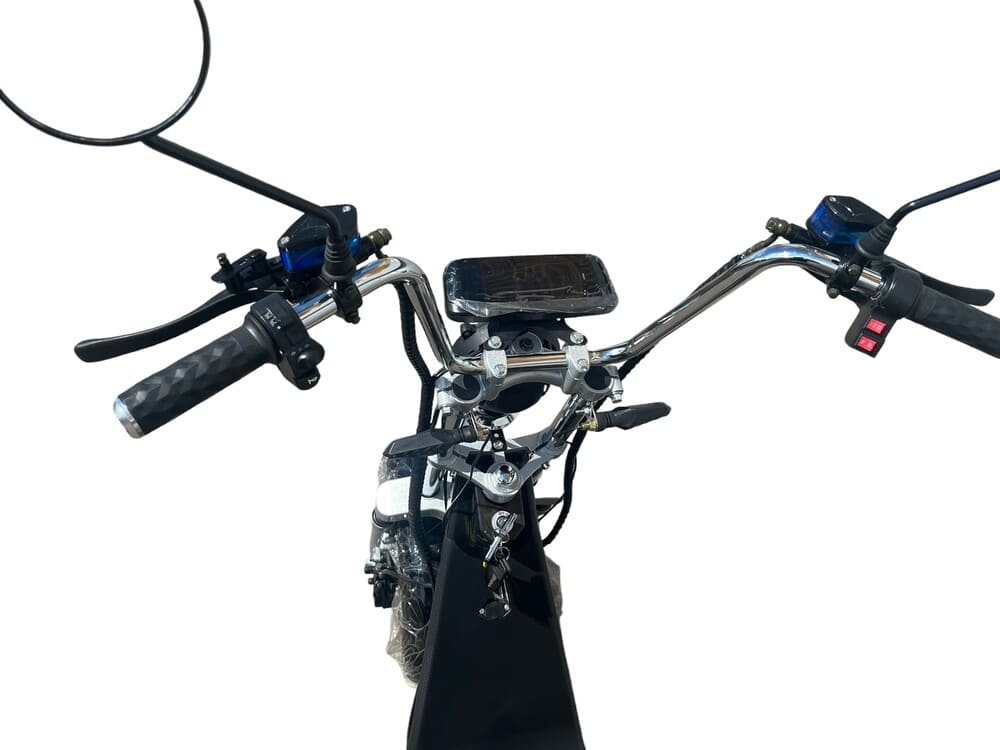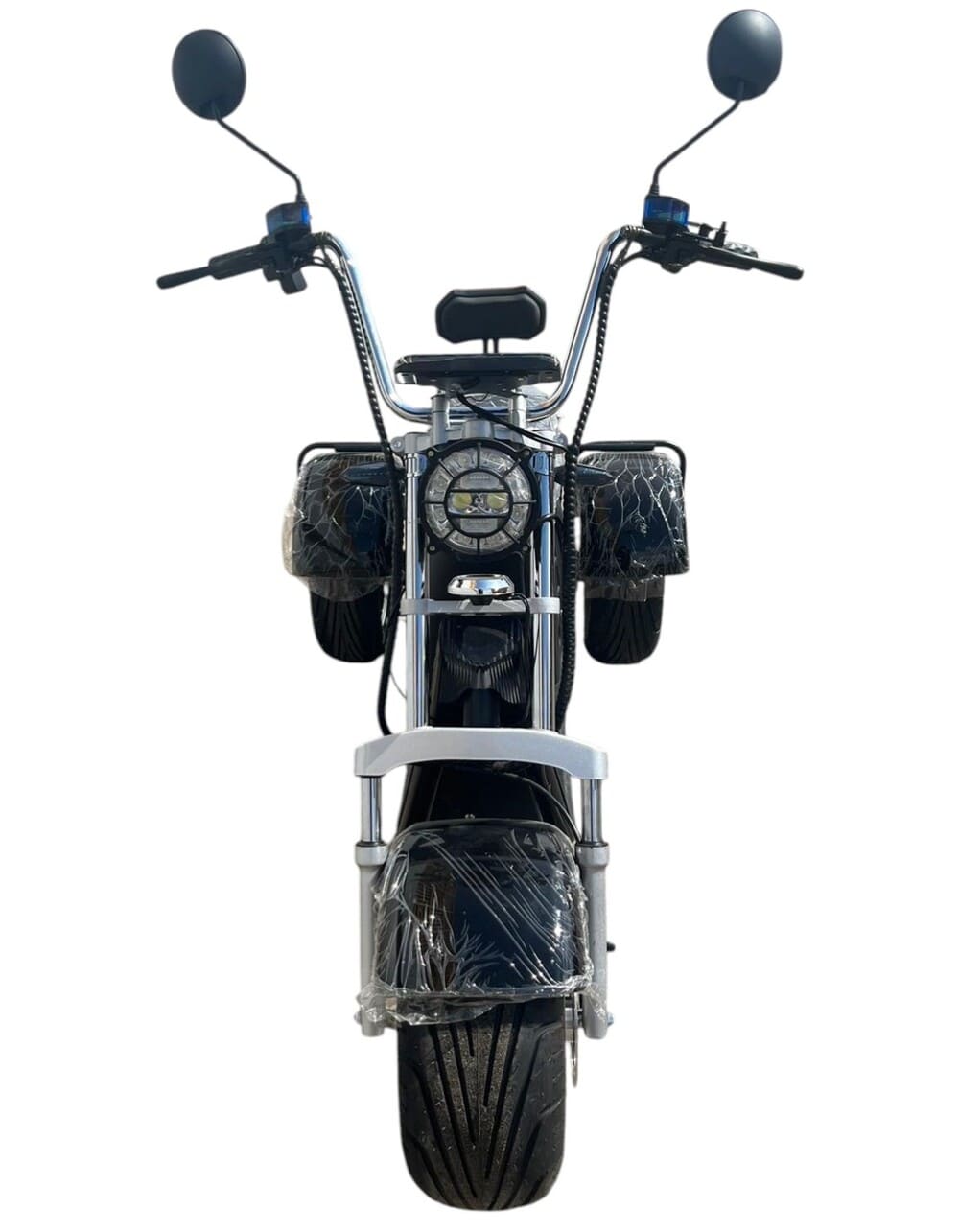 Maikaolin Harley R11 — это стильный и мощный электроскутер, вдохновлённый классическими мотоциклами, сочетающий ретро-дизайн с современными технологиями. Оснащённый двигателем мощностью 2000 Вт, он развивает скорость до 60 км/ч и обеспечивает запас хода до 60 км благодаря аккумулятору Li-ion 60 В / 21 000 мА·ч. Этот показатель делает его идеальным для городских маршрутов, доставки и повседневных поездок без необходимости частой подзарядки.
