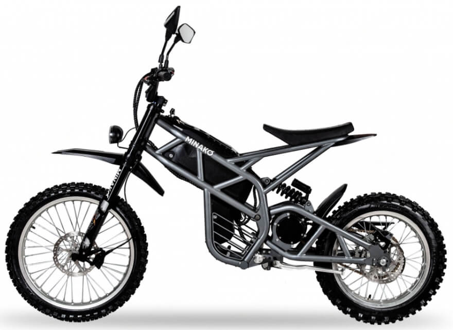 Электроскутер Minako CROSS привлекает внимание своим стильным дизайном, который напоминает современный мопед или крутую технику. Он оборудован большой светодиодной фарой и крепкой рамой, что подчеркивает его выдающиеся технические характеристики.