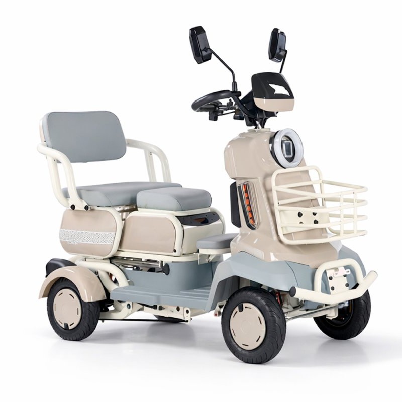Конструкция выполнена на прочной стальной раме, масса без аккумулятора составляет всего 77 кг. Установлены гидравлические амортизаторы спереди и пружинная задняя подвеска, что обеспечивает комфортную езду по неровностям. Тормозная система — барабанные тормоза спереди и сзади — гарантирует надёжное торможение. Колёса размером 3,5-R6 обеспечивают хорошую проходимость, а наличие дополнительного пассажирского места делает трицикл удобным для двоих. Rutrike Квадро — это практичный, лёгкий и надёжный выбор для повседневных поездок и активного отдыха.