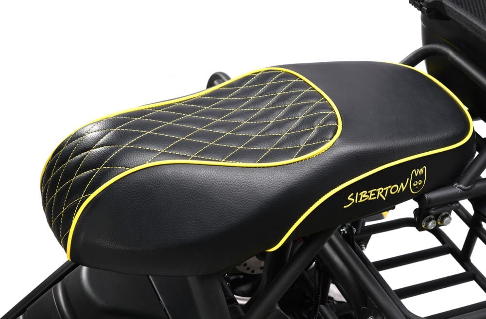 Комфорт и функциональность SIBERTON PRO TRIKE 3000W подчёркиваются его конструкцией. Передние колёса оснащены масляными амортизаторами, а задние — пружинной подвеской с масляными амортизаторами, что обеспечивает плавность хода даже на неровных поверхностях. Просторное мотоциклетное сиденье длиной 80 см, выполненное из износостойкой эко-кожи, делает каждую поездку максимально комфортной. Дополнительный багажник позволяет перевозить покупки или другие грузы, а встроенный кофр идеально подходит для хранения документов и мелких аксессуаров.