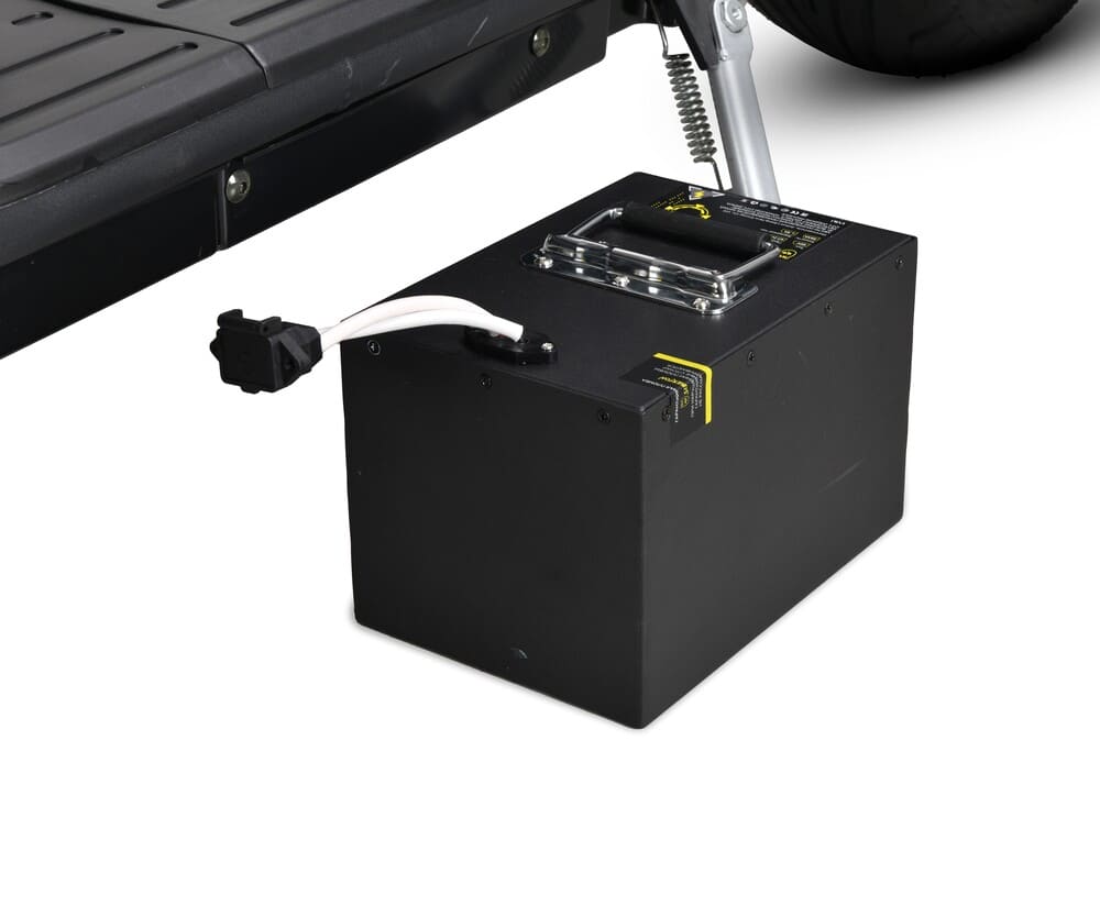 Для комфорта при движении по неровностям установлены масляные амортизаторы спереди и маслянные амортизаторы на пружинной подвеске сзади, эффективно смягчающие удары. Тормозная система — гидравлические дисковые тормоза на обоих колёсах — гарантирует мощное, точное и безопасное торможение даже в экстренных ситуациях. Это особенно важно при высокой скорости и большой массе устройства.