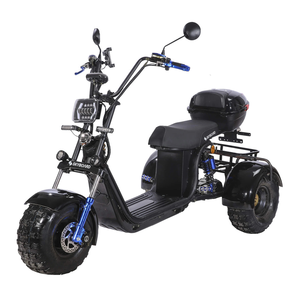 Этот трехколесный электроскутер оснащен аккумулятором на 72V 3000W, что позволяет развивать скорость до 56 км/ч, а также легко справляться с крутыми подъемами. Его усовершенствованная амортизация и трехколесная конструкция обеспечивают комфортное передвижение по неровным дорогам.