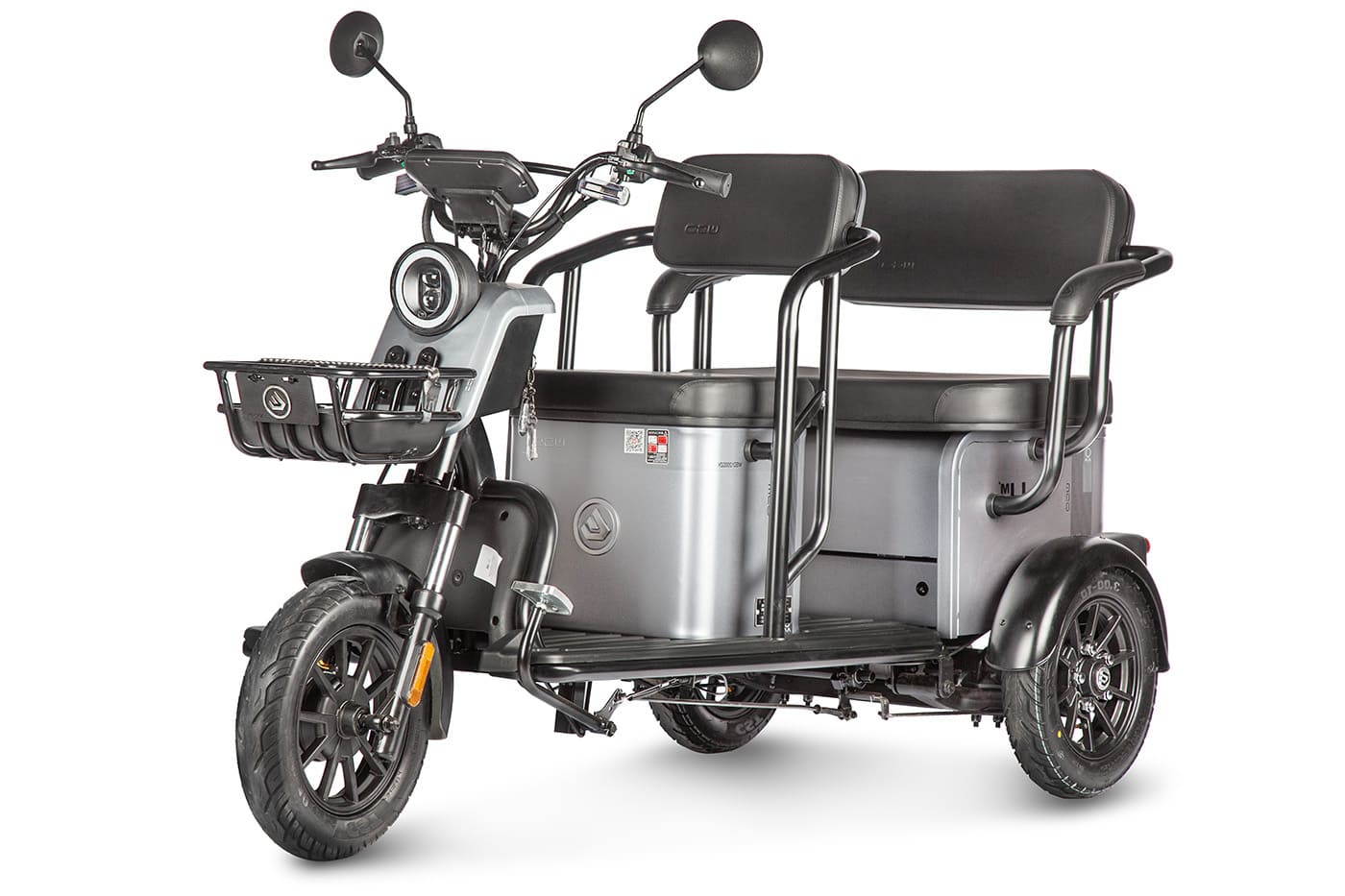 Электротрицикл Wanshida UM+ — это современное и экологичное решение для комфортных поездок по городу. Мощный двигатель на 1000 Вт гарантирует плавное и уверенное движение даже на сложных участках дороги, делая его идеальным выбором как для перевозки пассажиров, так и для транспортировки небольших грузов. Этот трицикл сочетает в себе надёжность, практичность и стильный дизайн, что делает его универсальным средством передвижения.