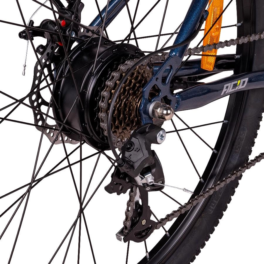 ACID E-Force — это классический электровелосипед, разработанный для комфортной езды по городу и асфальтированным трассам. Оснащённый задним двигателем мощностью 250 Вт, он развивает скорость до 25 км/ч и соответствует требованиям для использования без регистрации. Аккумулятор Li-Ion 36 В / 10 000 мА·ч обеспечивает запас хода до 40 км. Полная зарядка занимает 7 часов, что делает его удобным для повседневных поездок.