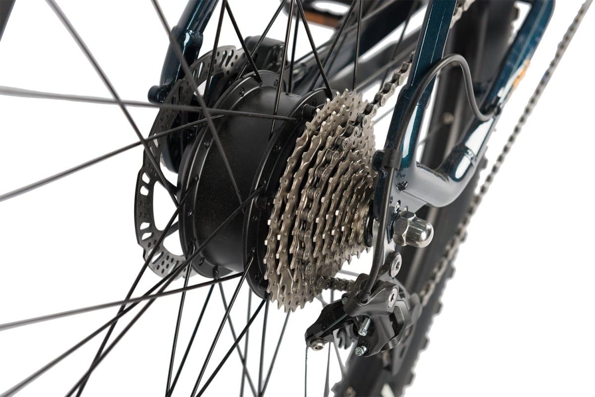 Конструкция велосипеда выделяется на фоне конкурентов: общий вес составляет всего 19,6 кг — один из самых низких показателей среди электровелосипедов с таким запасом хода. Колёса диаметром 29 дюймов обеспечивают плавный ход, отличное сцепление и высокую эффективность педалирования, а амортизационная подвеска смягчает удары от неровностей даже на грунтовых дорогах. Прочная рама и сбалансированная геометрия гарантируют контроль в поворотах и на высокой скорости, сохраняя при этом компактность для хранения в квартире или офисе.