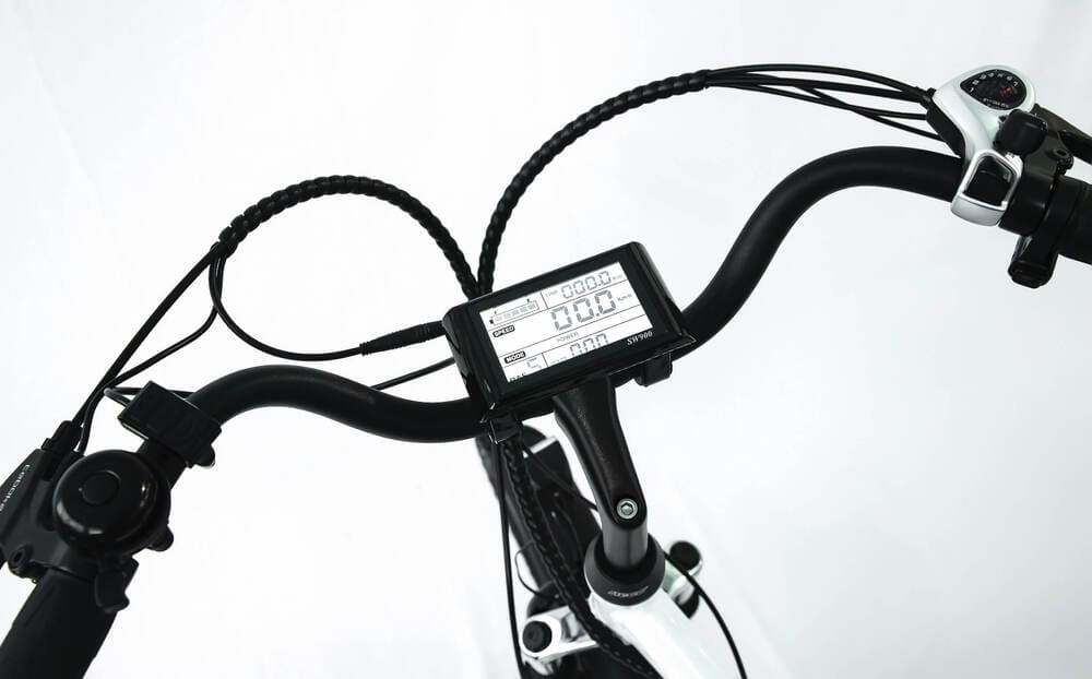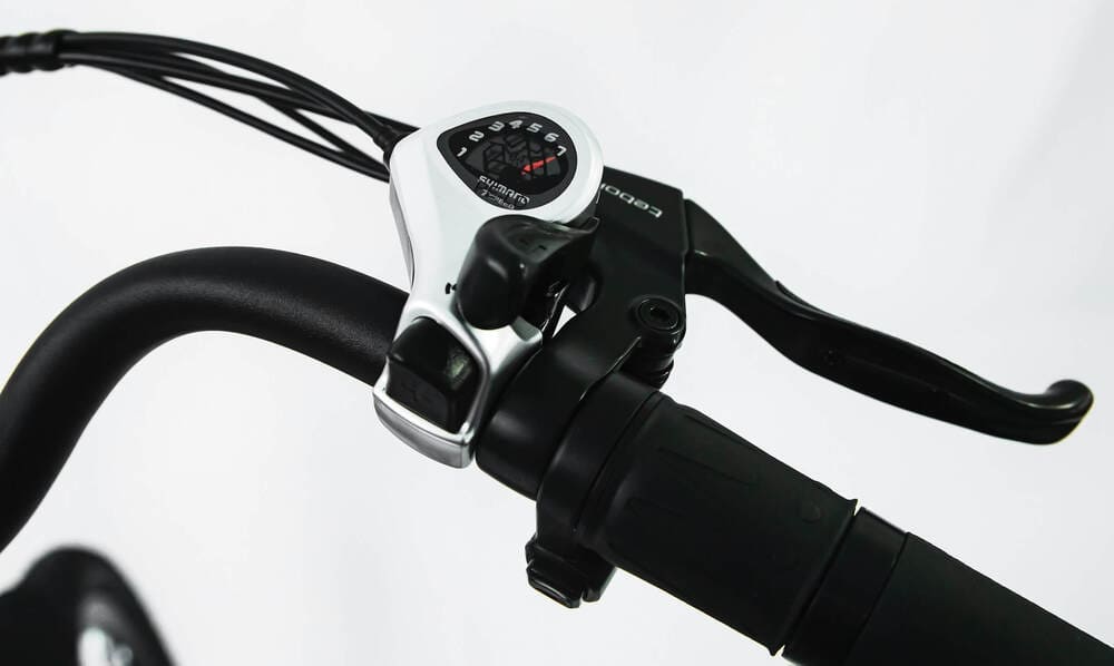 С LCD-монитором на руле, отображающим информацию о скорости, пробеге и уровне заряда, вы можете выбирать уровни мощности и подстраивать скорость движения под себя. Всего доступно 5 режимов, с ограничением скорости на каждом из них, примерно 16/22/28/32/40 км/час. Эта функция используется с 2015 года и предоставляет удобство, позволяя людям разного пола и возраста наслаждаться мощным электрическим велосипедом с возможностью настройки ограничения скорости. Также на руле имеется монетка для механического переключения 7 скоростей, что обеспечивает комфортное катание в режиме обычного велосипеда.
