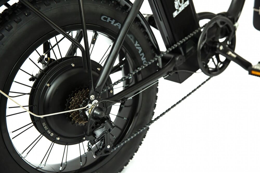 Для комфортной езды предусмотрена передняя подвеска, а также усиленные шины размером 20×4 дюйма спереди и сзади, которые обеспечивают отличное сцепление и проходимость. Также в конструкции реализован низкий тип рамы из прочного материала, что облегчает посадку и управление. Благодаря складной конструкции его легко транспортировать и хранить даже в небольшом пространстве.