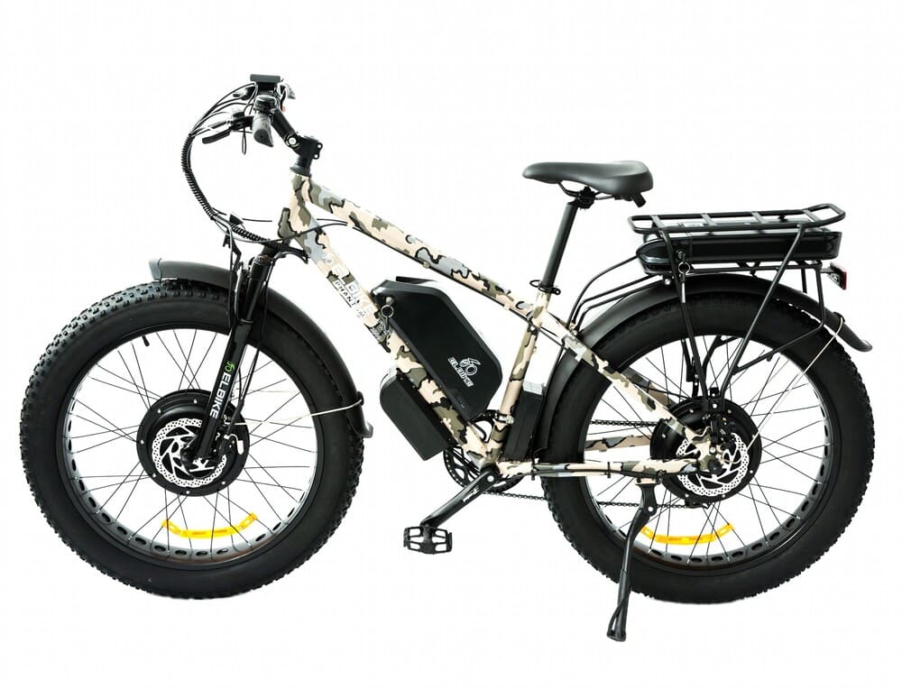 Ebike PHANTOM Twix 2000 cam оборудован полным приводом, что гарантирует высокую проходимость и уверенное поведение на бездорожье. Колеса размером 26×4 дюйма обеспечивают отличное сцепление даже на песке, снегу и грязи. Для безопасности установлены гидравлические тормоза спереди и сзади, а также 7-ступенчатая трансмиссия Shimano для комфортного педалирования. Мягкая вилка ZOOM и жесткая подвеска дополняют общий комфорт и устойчивость.