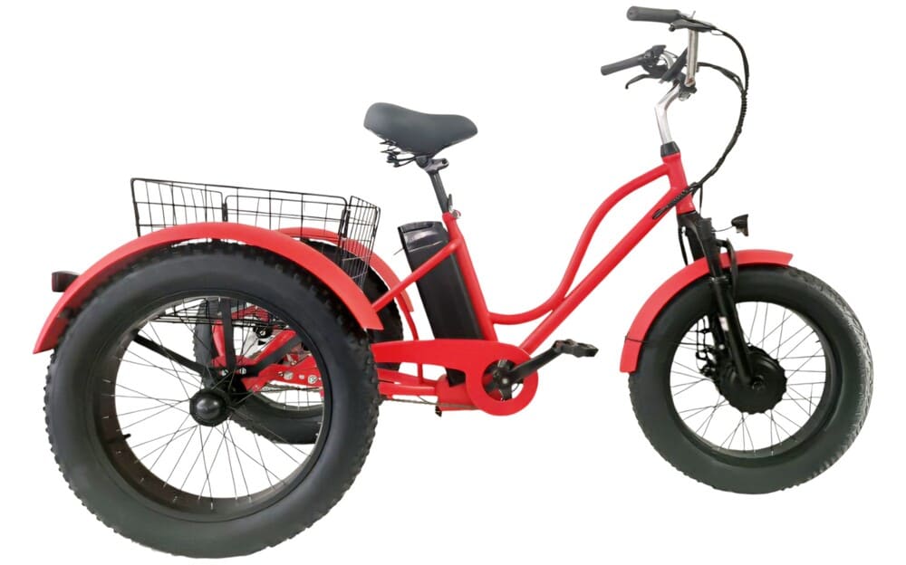 Трицикл выполнен из алюминиевой рамы, весит 32 кг и рассчитан на максимальную нагрузку до 160 кг, что позволяет перевозить пассажира или крупный груз. Установлены дисковые тормоза для надёжной остановки, а колёса диаметром 20 дюймов обеспечивают устойчивость и маневренность. Модель не складная, но оснащена багажником, что делает её отличным выбором для доставки, поездок в магазин или поездок на дачу. Это практичный, долговечный и экологичный транспорт для активных горожан.