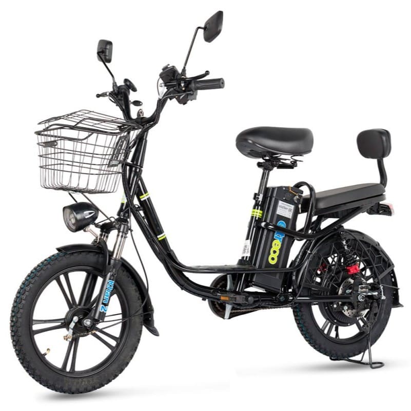 Электровелосипед рассчитан на максимальную нагрузку до 140 кг, что делает его идеальным для перевозки пассажира или груза. Удобное мягкое сиденье со спинкой сзади обеспечивает комфорт при поездках вдвоём, а при необходимости его можно легко заменить на грузовой багажник — это делает модель универсальной для работы и повседневного использования. Колёса размером 18" × 2,5" обеспечивают отличное сцепление как на асфальте, так и на грунтовых дорогах.