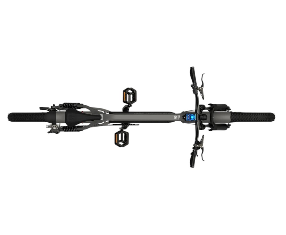 Рама изготовлена из прочного алюминия 6000 серии или авиационного алюминия, что обеспечивает лёгкий вес, высокую жёсткость и устойчивость к коррозии. Передние и задние амортизаторы эффективно смягчают удары, позволяя комфортно передвигаться по пересечённой, скалистой и грунтовой местности. Тормозная система — гидравлические дисковые тормоза с перфорированными дисками — обеспечивает мощное и безопасное торможение даже на высокой скорости.