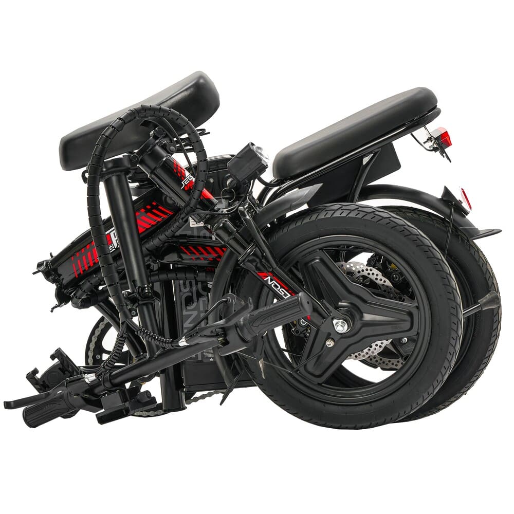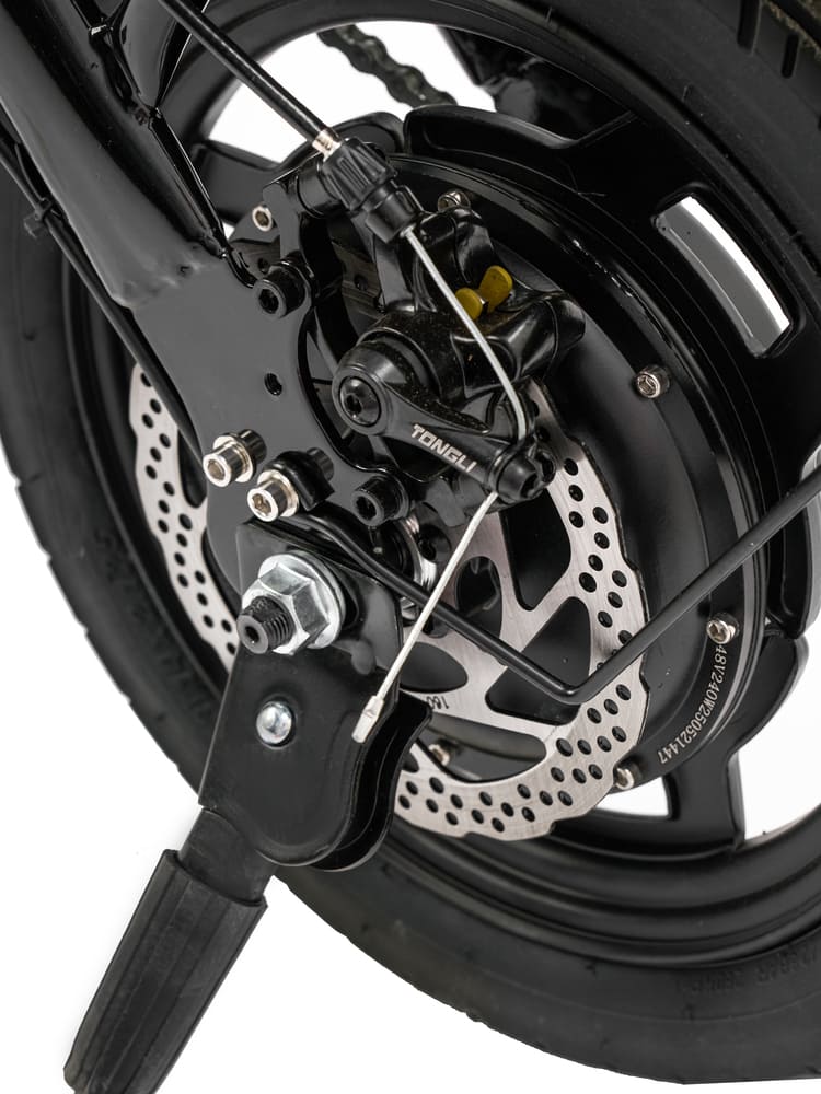 Колеса диаметром 14 дюймов с надувными шинами обеспечивают уверенное сцепление с дорогой и маневренность даже в плотном потоке. Для безопасности установлены механические тормоза, а также дисковые на колесах. Низкая алюминиевая рама облегчает посадку и контроль над рулём, а ее материал обеспечивает легкость и прочность конструкции.