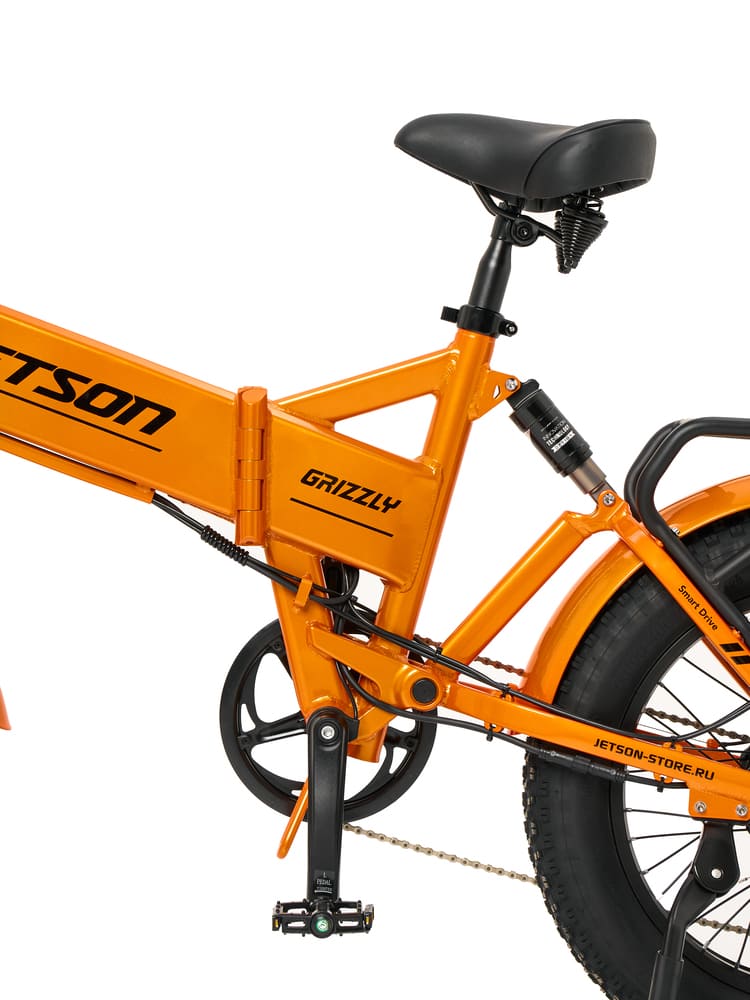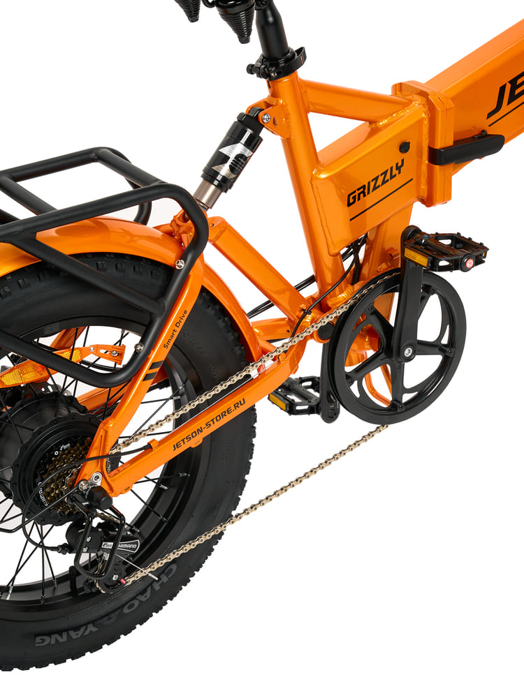 Jetson GRIZZLY — это мощный и универсальный электровелосипед, разработанный для активного использования в городских и пригородных условиях. Мощность двигателя составляет 1200 Вт, а максимальная скорость достигает 50 км/ч, что делает его идеальным выбором для быстрых и комфортных поездок. Устройство выдерживает нагрузку до 150 кг, а его прочная конструкция обеспечивает надежность даже при интенсивной эксплуатации.