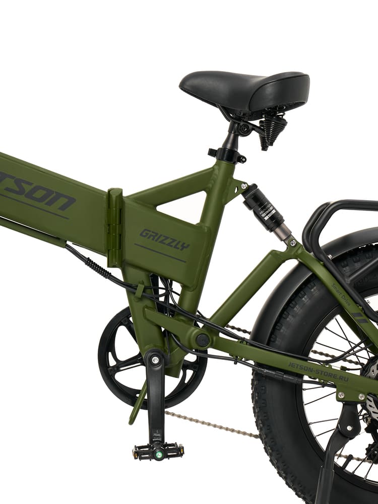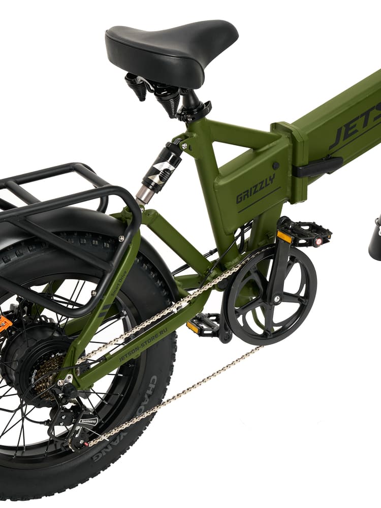 Jetson GRIZZLY — это мощный и универсальный электровелосипед, разработанный для активного использования в городских и пригородных условиях. Мощность двигателя составляет 1200 Вт, а максимальная скорость достигает 50 км/ч, что делает его идеальным выбором для быстрых и комфортных поездок. Устройство выдерживает нагрузку до 150 кг, а его прочная конструкция обеспечивает надежность даже при интенсивной эксплуатации.