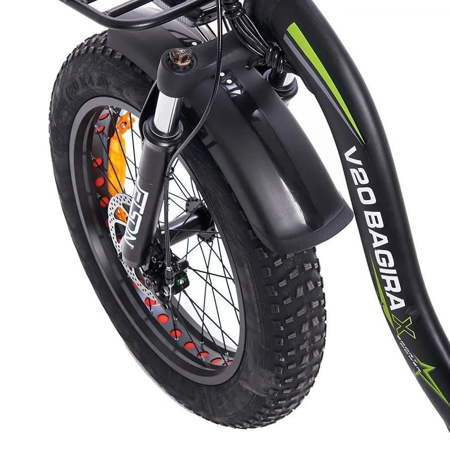 Для безопасности установлены дисковые тормоза спереди и сзади, гарантирующие мощное и стабильное торможение в любых погодных условиях. Колёса диаметром 20 дюймов обеспечивают хорошую маневренность и устойчивость на асфальте, грунтовках и легком бездорожье. Прочный обод и качественные покрышки повышают износостойкость и проходимость.
