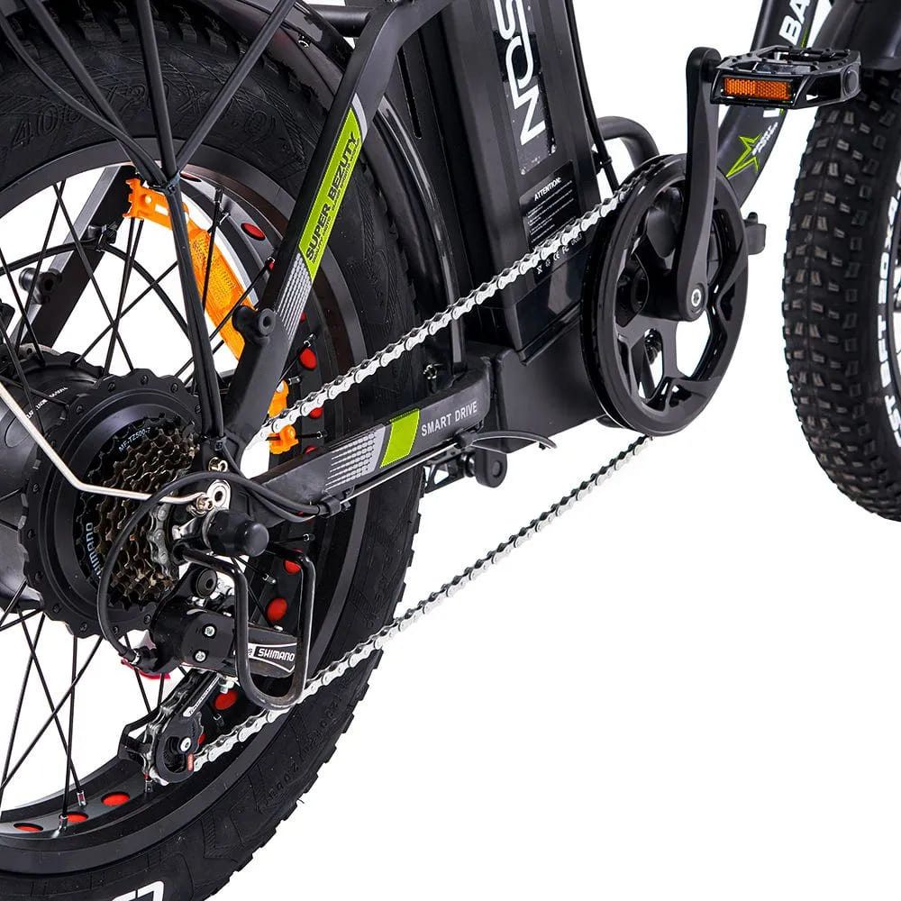 Электровелосипед работает от аккумулятора напряжением 48 В и ёмкостью 25 000 мА·ч (25 А·ч), обеспечивающего запас хода до 70 км. Полная зарядка занимает около 8 часов, что делает его удобным для регулярного использования. Батарея интегрирована в прочную алюминиевую раму, которая сочетает лёгкость, жёсткость и устойчивость к коррозии, обеспечивая долгий срок службы конструкции.