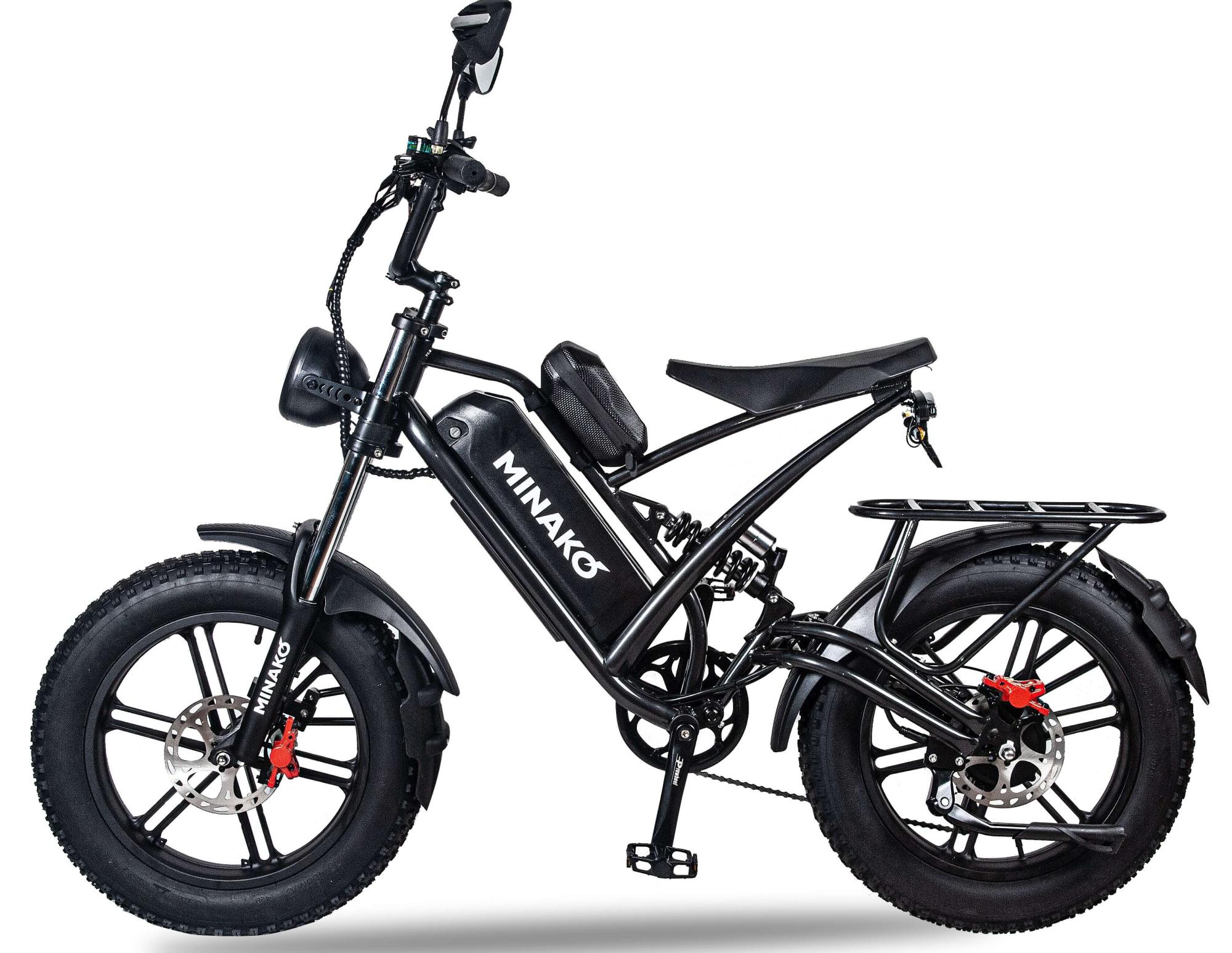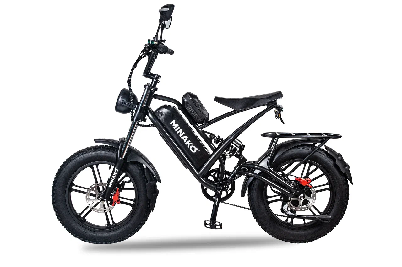 Электровелосипед Minako FOX - модель пользуется огромной популярностью и считается настоящим супербайком. Внешне он напоминает мопед и выглядит стильно и презентабельно. Minako FOX предназначен для активных пользователей, которые ценят скорость и экстремальные ощущения.