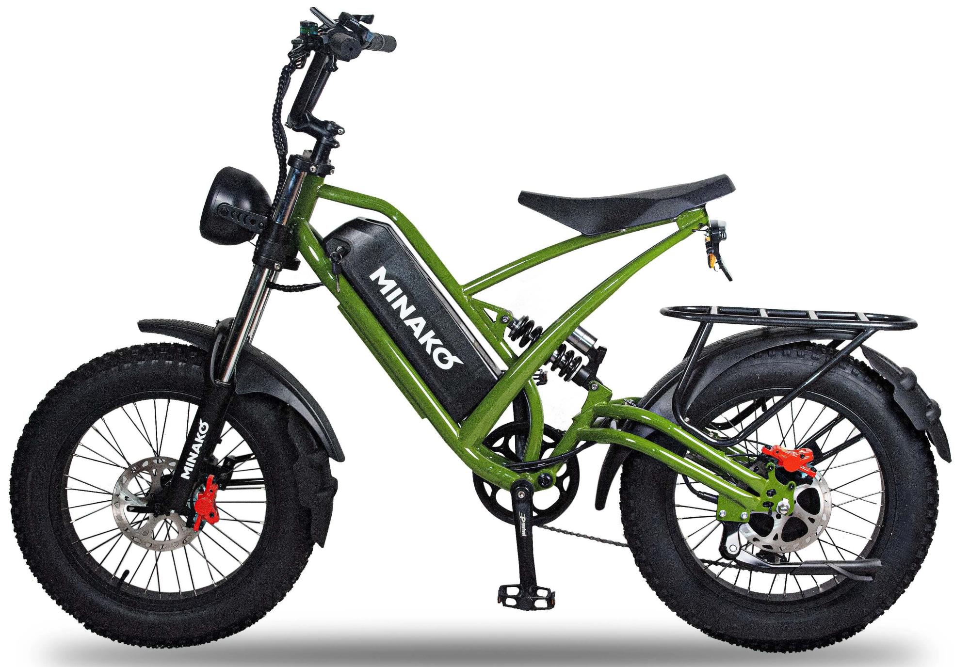 Электровелосипед Minako FOX - модель пользуется огромной популярностью и считается настоящим супербайком. Внешне он напоминает мопед и выглядит стильно и презентабельно. Minako FOX предназначен для активных пользователей, которые ценят скорость и экстремальные ощущения.