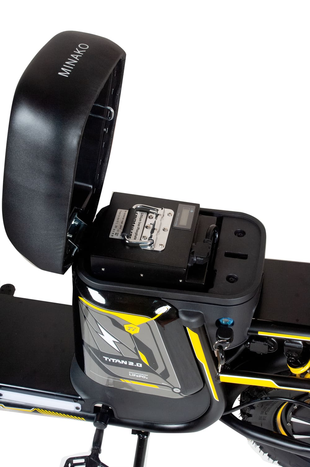 Minako Titan 2.0 создан для практичного использования без лишних наворотов. В нем нет багажника или корзины, что делает его более универсальным решением для тех, кто предпочитает минимализм и функциональность. Габаритные размеры велосипеда (170×64×110 см) позволяют легко хранить его даже в ограниченном пространстве. Надежная конструкция, продуманные технические характеристики и привлекательная автономность делают этот электровелосипед отличным выбором для тех, кто ищет уверенное и долговечное транспортное средство для городских и загородных поездок.