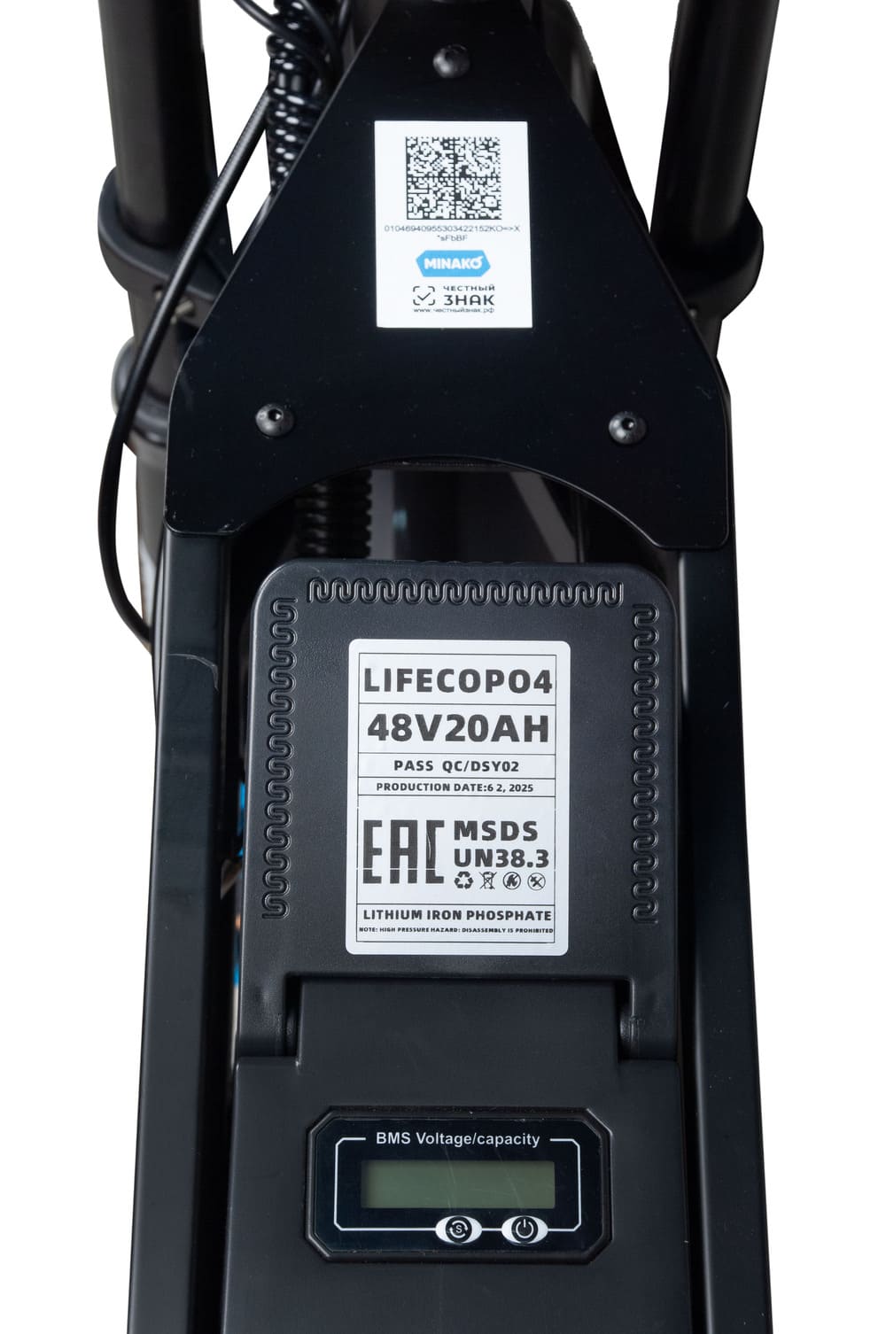 Велосипед комплектуется высокопроизводительным аккумулятором емкостью 20 Ач и напряжением 48 В, который позволяет проехать до 80 км на одном заряде. Полная зарядка батареи занимает всего 6 часов, что делает электровелосипед практичным выбором для регулярного использования. Колеса диаметром 20 дюймов обеспечивают отличную маневренность и устойчивость при движении.