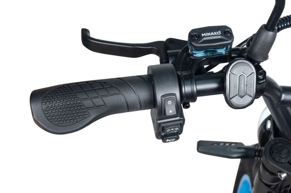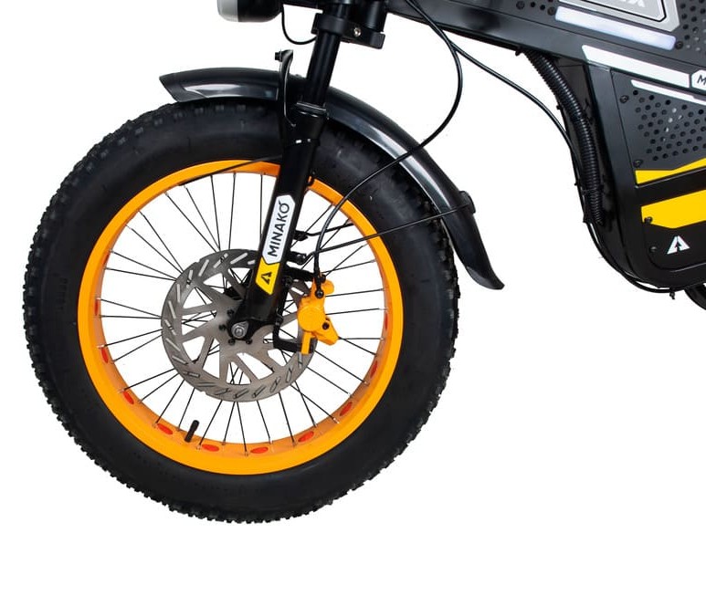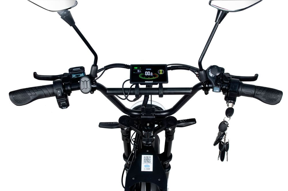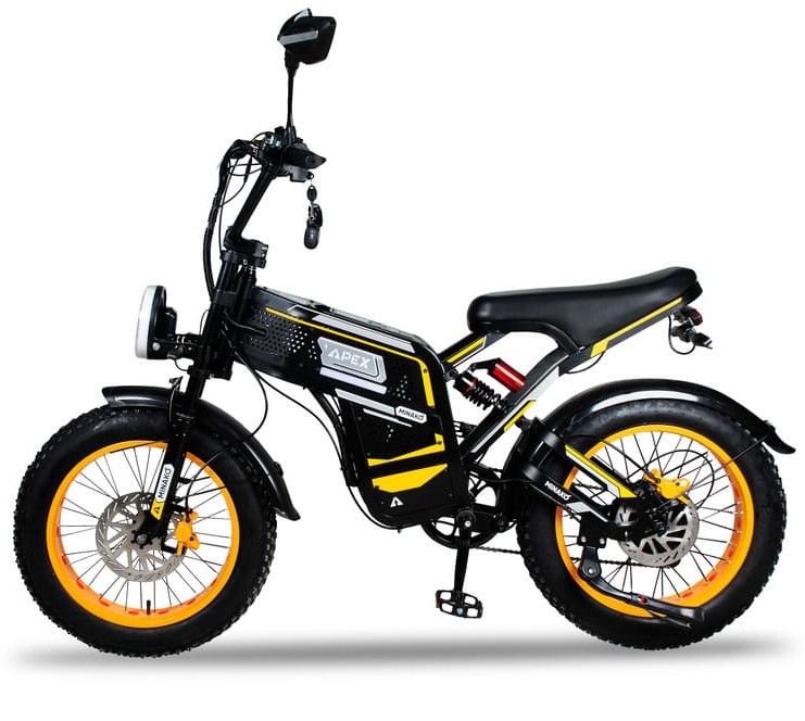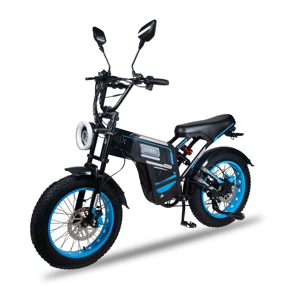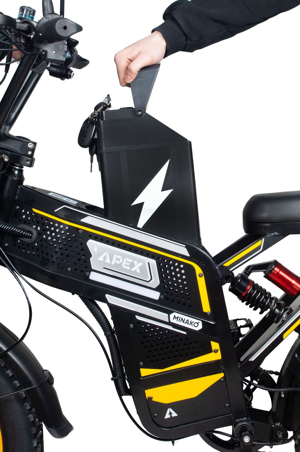 Электровелосипед Minako Apex - мощный и надежный транспорт для активного отдыха и ежедневных поездок. Благодаря 1500-ваттному двигателю и заднему приводу, он развивает максимальную скорость до 50 км/ч, легко справляясь с подъемами и различными типами покрытий. Модель оснащена современной системой двойной амортизации (hardtail спереди и подвеской сзади), что обеспечивает комфортное передвижение даже по неровным дорогам.