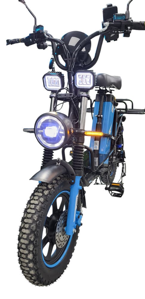 Minako Monster Pro оборудован багажником и корзиной, что делает его невероятно практичным для повседневных задач — от поездок в магазин до перевозки личных вещей. Общий вес велосипеда — 35 кг, а габариты упаковки — 141×26×70 см, что упрощает транспортировку и хранение. Это идеальный выбор для тех, кто ищет мощный, вместительный и технологичный электровелосипед для города и не только.