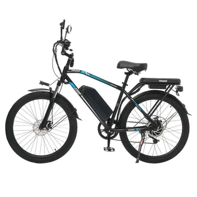 Minako Mavex сочетает в себе мощность, практичность и выносливость. Благодаря крупным колёсам и продуманной конструкции, он уверенно чувствует себя как на асфальте, так и на грунтовых дорогах. Это идеальный выбор для тех, кто ищет надёжный электровелосипед для повседневных поездок, активного отдыха и поездок на работу — практичный, удобный и готовый к любым вызовам.