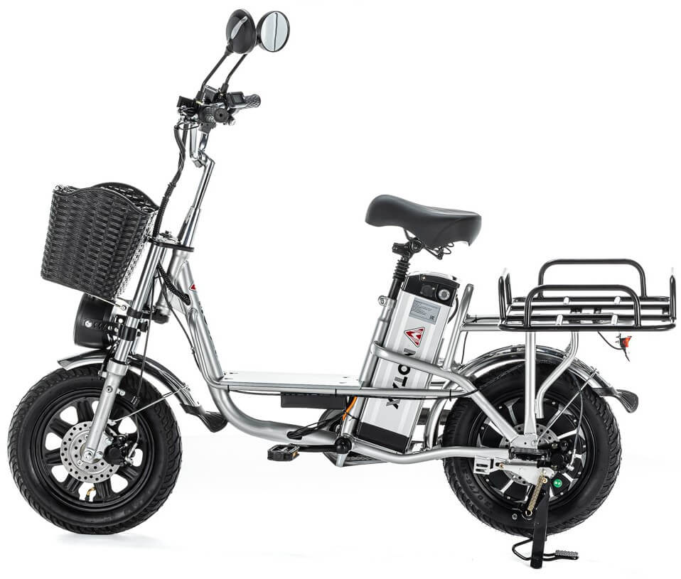 Электровелосипед Motax E-NOT Express PRO 6020 MK – это электровелосипед, спроектированный для комфортных перемещений как в городе, так и за его пределами. Он базируется на качественной и надежной раме, изготовленной из прочного и легкого алюминиевого сплава. Нижняя часть рамы укомплектована платформой, предоставляющей удобное место для ног при поездках на электротяге. На задней части велосипеда находится просторный багажник с защитными бортами, и спереди расположена глубокая корзина для продуктов и личных вещей. Этот электровелосипед окажется полезным для жителей города, пригорода и профессиональных курьеров, благодаря своей вместительной задней платформе с бортами, способной вместить большие сумки и грузы.