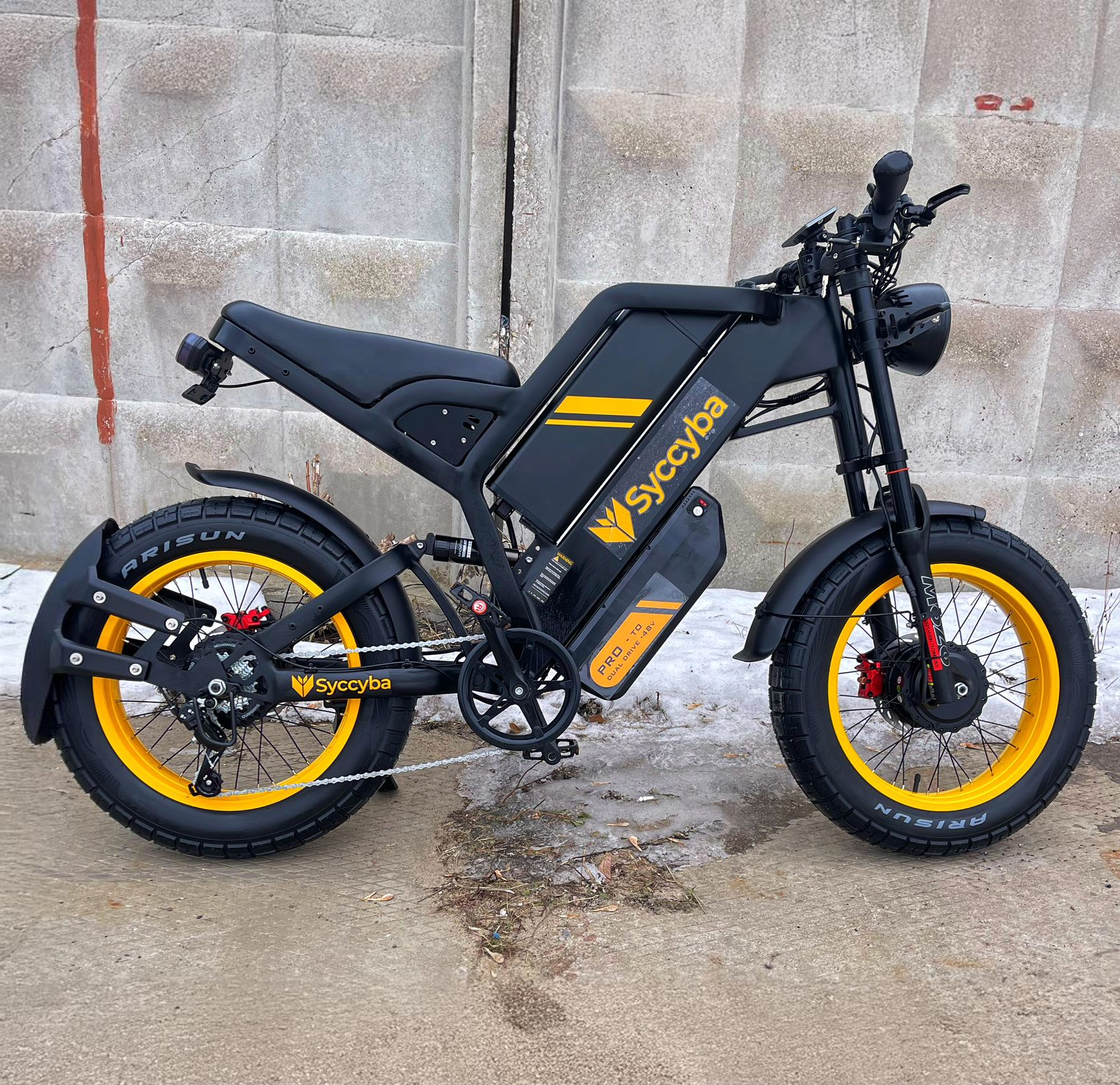 Электровелосипед Syccyba GT20 Dual – это мощное и универсальное транспортное средство, предназначенное для тех, кто ценит производительность и надежность. Оснащенный двигателем мощностью 2700 Вт и полным приводом, этот велосипед способен развивать максимальную скорость до 70 км/ч, что делает его идеальным выбором как для городских поездок, так и для преодоления сложной пересеченной местности. Благодаря аккумулятору ёмкостью 55 Ач и напряжением 48 В, дальность хода достигает впечатляющих 200 км на одном заряде, а время полной зарядки составляет всего 8 часов, что обеспечивает длительную автономность использования.