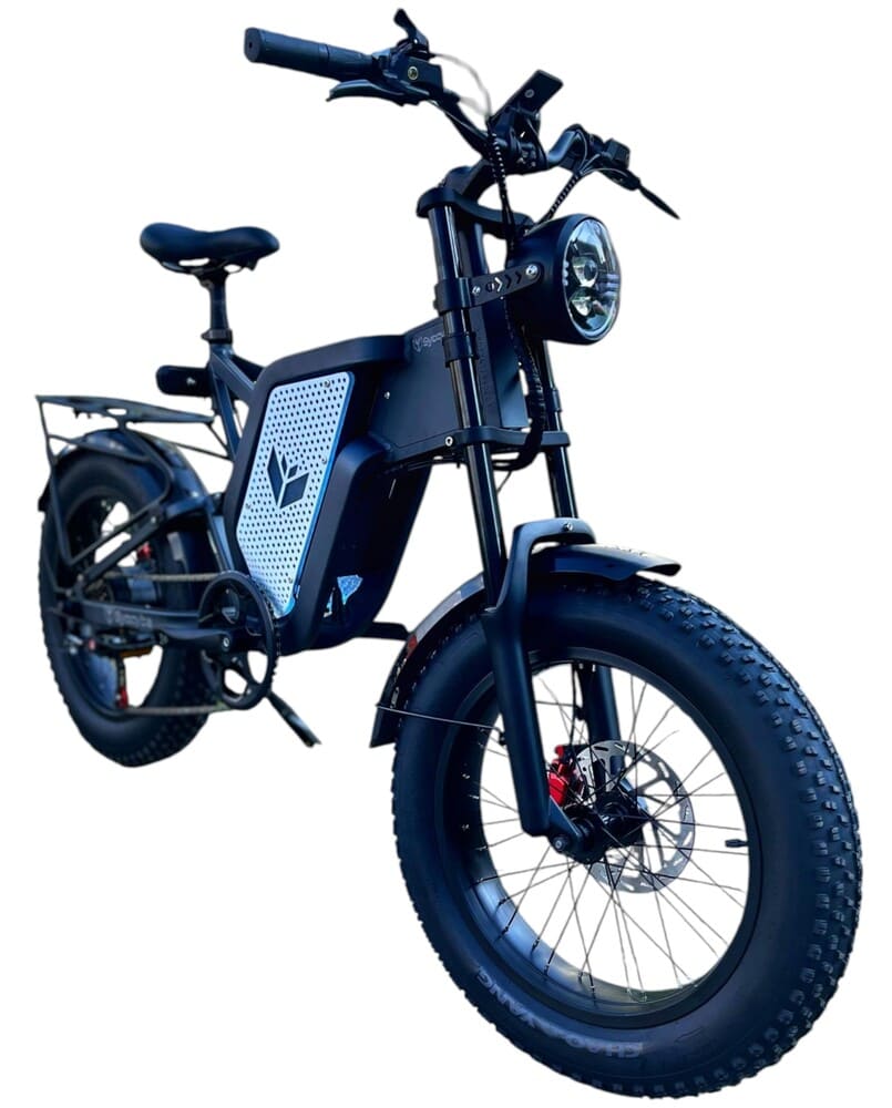 Электрофэтбайк работает от аккумулятора напряжением 48 В и ёмкостью 20 000 мА·ч, обеспечивающего длительный запас хода и стабильную работу в течение всего дня. Батарея интегрирована в раму, обеспечивая баланс и защиту от внешних воздействий. Устройство не складывается, что подчёркивает его направленность на внедорожные поездки и прочность конструкции.
