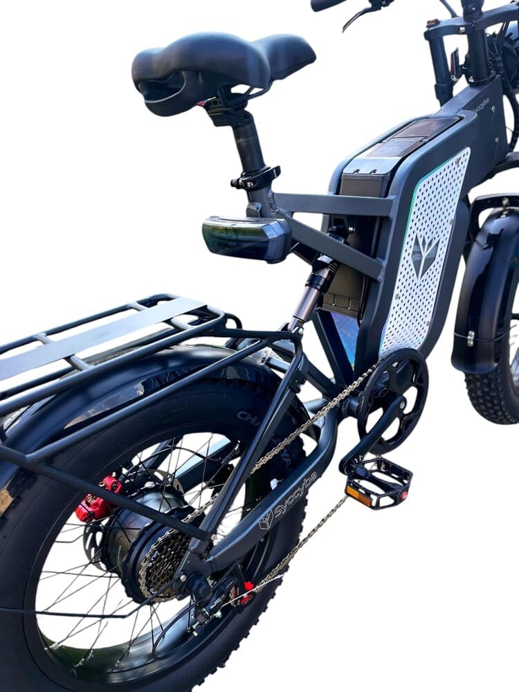 Syccyba Impulse Lite оснащен LCD-дисплеем, отображающим скорость, уровень заряда, пройденное расстояние и другие параметры. Также в комплекте — передняя фара и стоп-сигнал, обеспечивающие безопасность при езде в темное время суток. Общий вес устройства составляет 35 кг. Это идеальный выбор для тех, кто ищет прочный, производительный и комфортный электровелосипед для приключений вне дорог общего пользования.