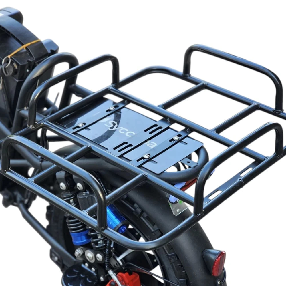 Syccyba Titan комплектуется вместительным багажником, что делает его идеальным для повседневных задач — от поездок в магазин до доставки. На руле расположен цифровой дисплей, отображающий скорость, уровень заряда, пройденное расстояние и режим работы. Общий вес модели — 63 кг, габариты упаковки — 153×27×65 см. Это надёжный, технологичный и функциональный электровелосипед для тех, кто ценит мощность, комфорт и высокую автономность.