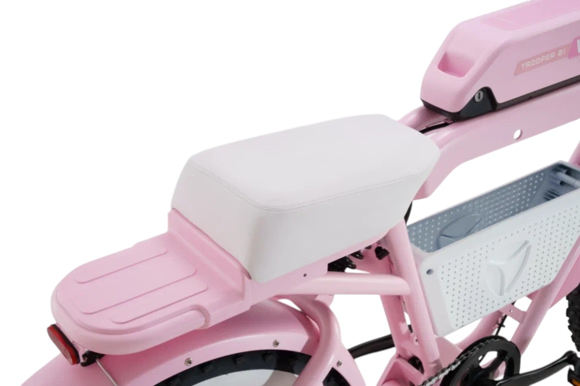 Конструкция выполнена из прочного алюминиевого сплава и весит 36,5 кг, что делает её устойчивой и манёвренной одновременно. Электровелосипед оснащён подвесной вилкой и толстыми шинами 20×4.0, которые вместе с двойной подвеской эффективно гасят удары от неровностей дороги, обеспечивая высокий уровень комфорта даже на сложных участках. Уклон, который может преодолеть велосипед, достигает 25%, а защита IP65 гарантирует надёжность в дождь и пыль.