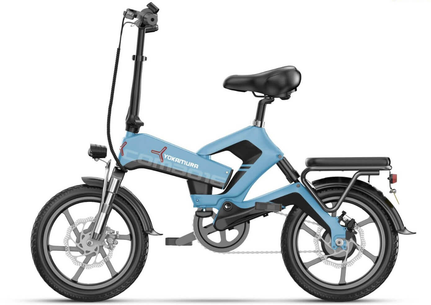 Интеллектуальная система управления батареей обеспечивает оптимальное распределение энергии и увеличивает срок службы аккумулятора. Светодиодный дисплей на руле предоставляет информацию о скорости, расстоянии и уровне заряда батареи. Yokamura Combo 16 идеально подходит для городских жителей, которые ценят экономию времени и усилий на дороге. Этот электровелосипед станет надежным компаньоном в ежедневных поездках на работу, по магазинам или на отдых.