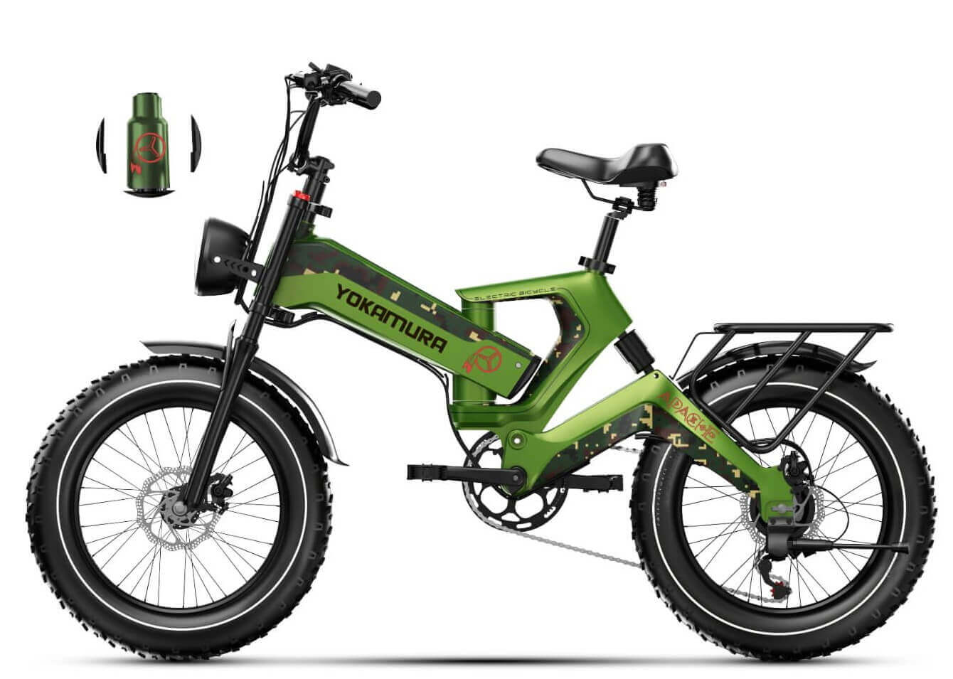 Yokamura Apache представляет собой инновационный электровелосипед, который сочетает в себе удобство, стиль и эффективность. Этот велосипед выделяется своими широкими колесами и складной конструкцией, что делает его идеальным для использования в городских условиях и легкого хранения.