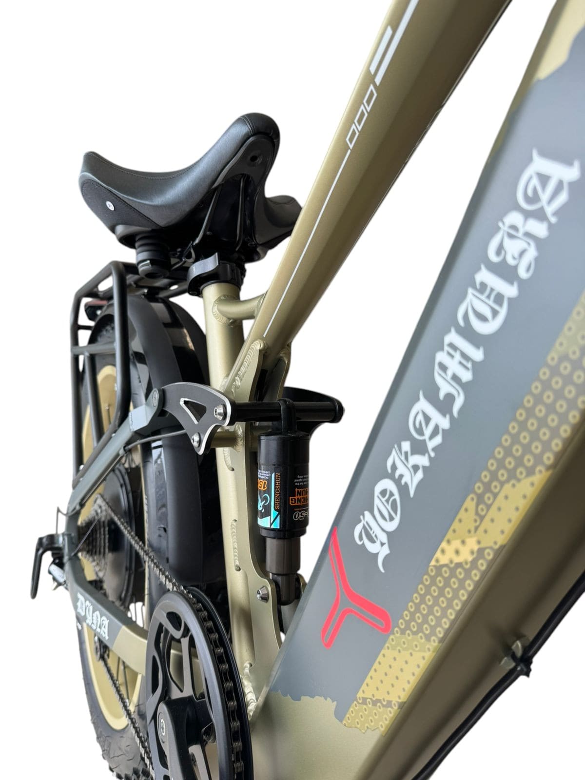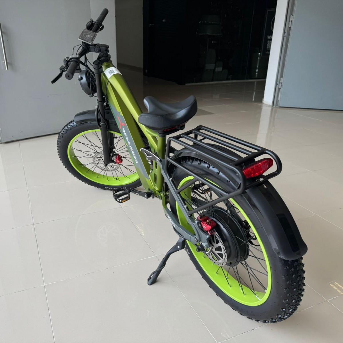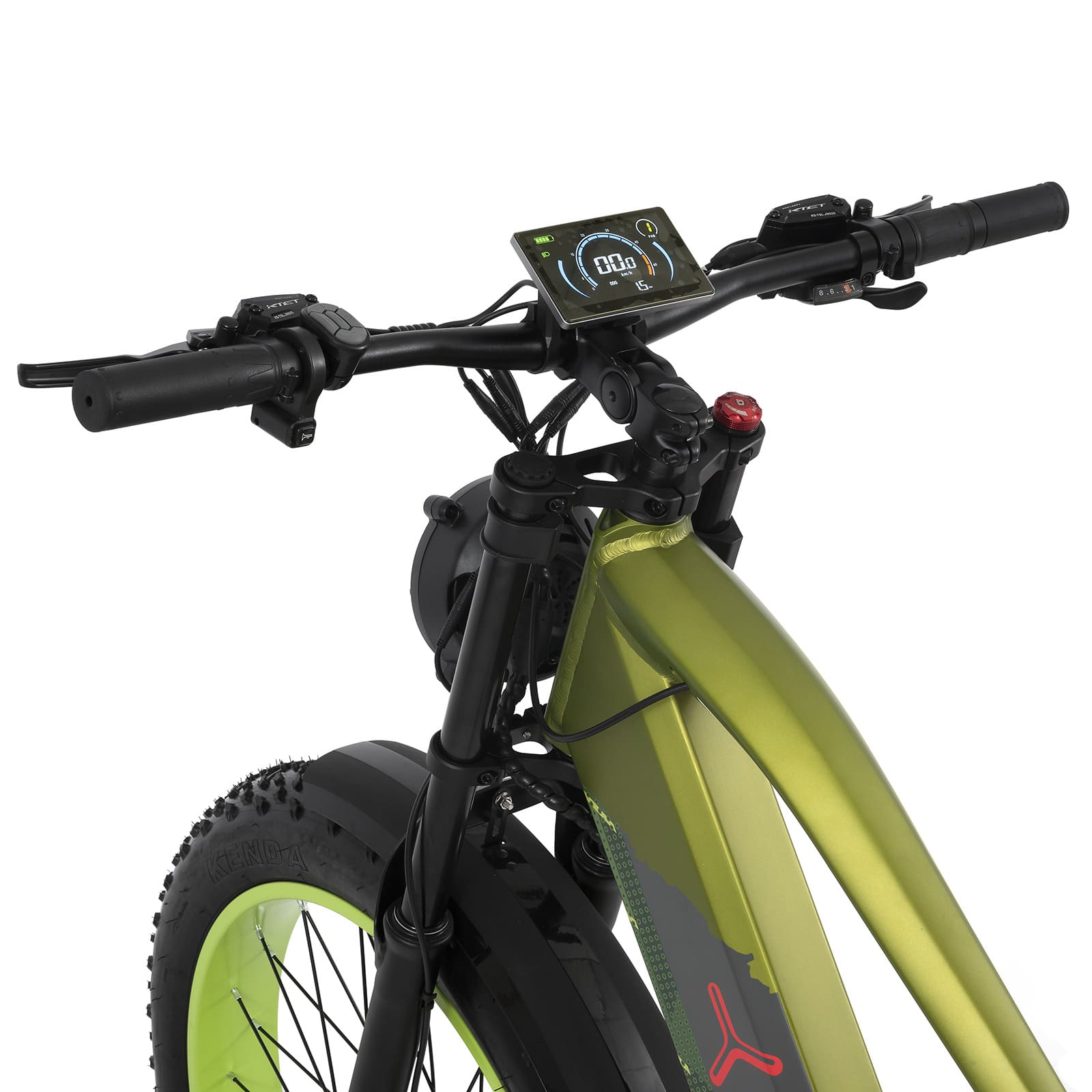 Конструкция велосипеда предусматривает комфортную и безопасную езду: гидравлическая двухпоршневая тормозная система Ktet гарантирует точное и эффективное торможение, а гидравлический передний амортизатор обеспечивает плавность хода даже на неровных поверхностях. Диаметр колес 26 дюймов сочетает маневренность и устойчивость, что делает электровелосипед удобным как в городе, так и на пересеченной местности.