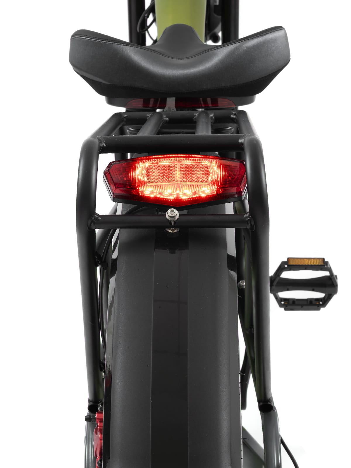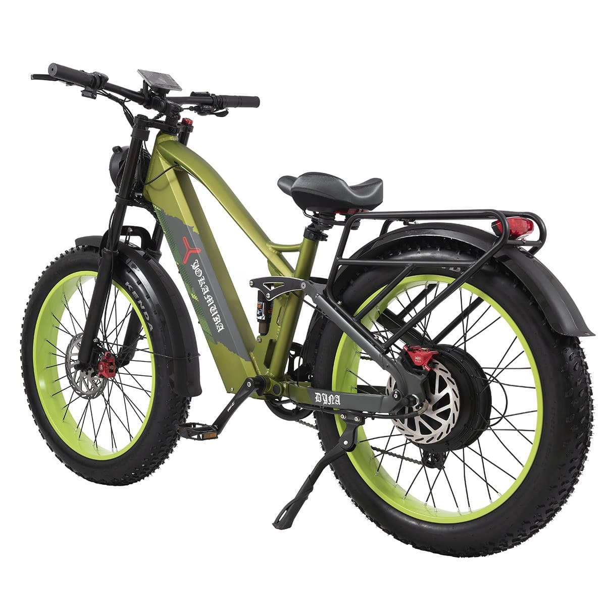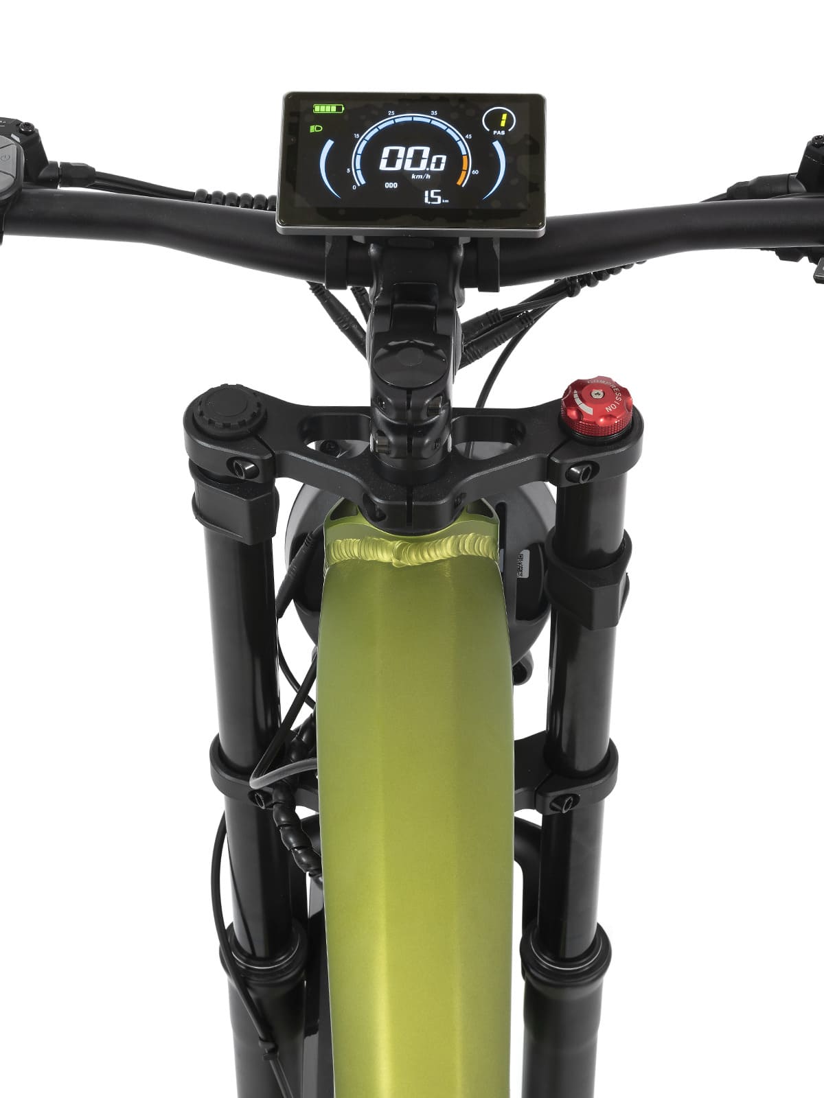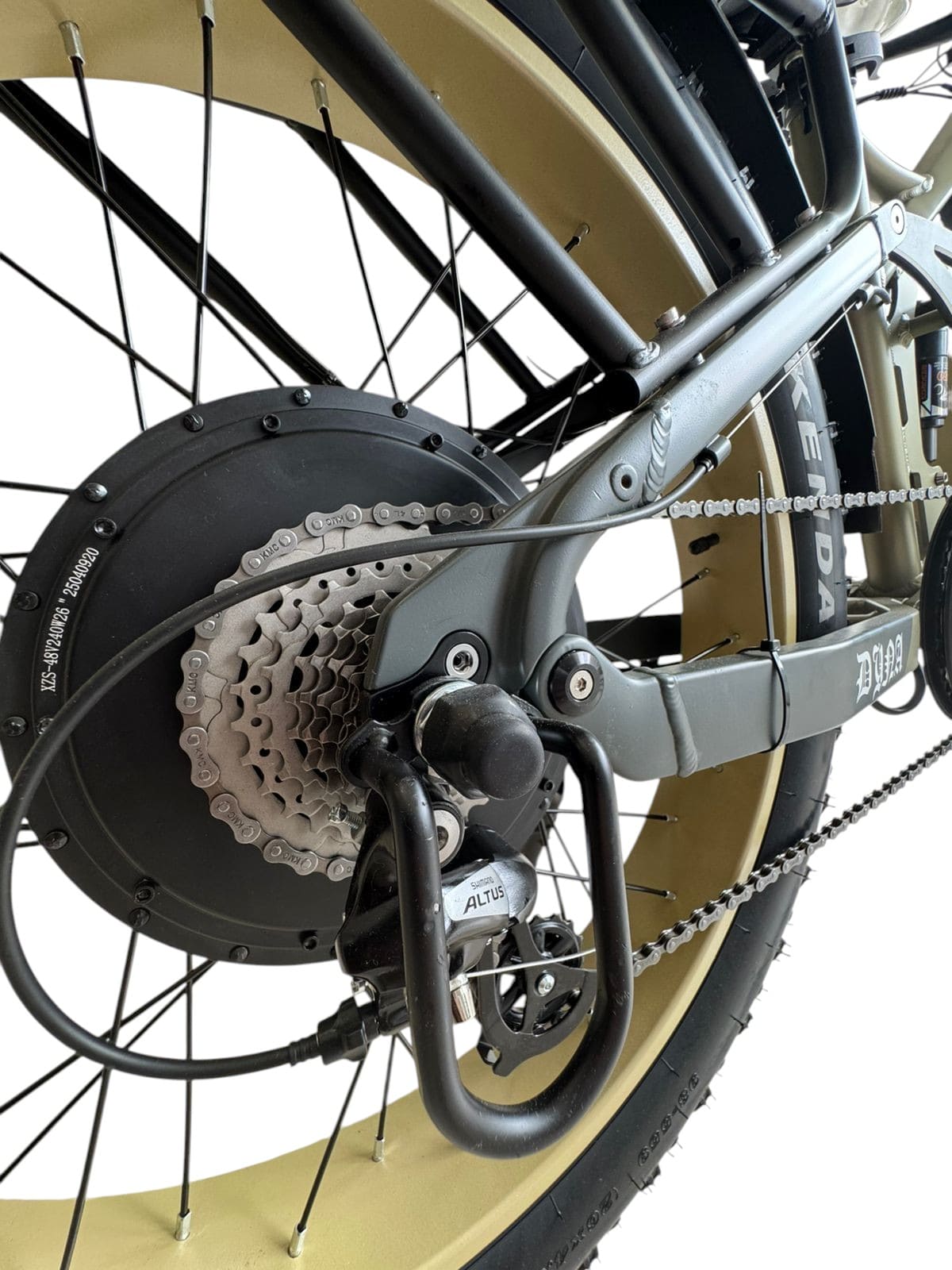 Конструкция велосипеда предусматривает комфортную и безопасную езду: гидравлическая двухпоршневая тормозная система Ktet гарантирует точное и эффективное торможение, а гидравлический передний амортизатор обеспечивает плавность хода даже на неровных поверхностях. Диаметр колес 26 дюймов сочетает маневренность и устойчивость, что делает электровелосипед удобным как в городе, так и на пересеченной местности.