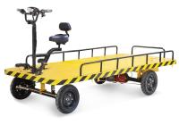 Тележка имеет прочную сварную раму, которая позволяет перевозить грузы весом до 1 тонны. Габариты платформы составляют 2500 x 1130 мм, что делает ее удобной для размещения крупногабаритных грузов или поддонов. Высота бортов регулируется в зависимости от размера груза, а сиденье оператора можно развернуть на 180°, адаптируясь под задачи. Максимальный пробег на одном заряде достигает 30 км, а время полной зарядки составляет 8 часов.