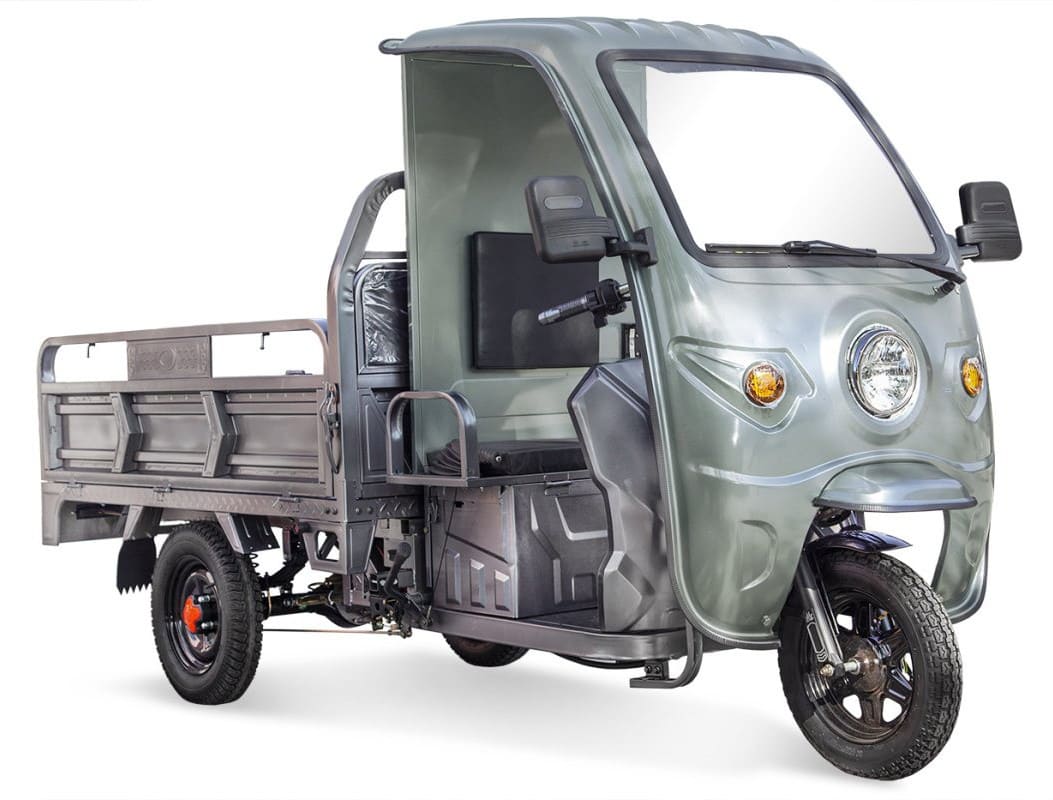 Электротрицикл работает от аккумулятора напряжением 60 В с возможностью выбора типа батареи: AGM VRLA, LiFePo4 или Li-ion. Такая гибкость позволяет адаптировать транспорт под бюджет и условия эксплуатации. Запас хода достигает 80 км, а полная зарядка занимает около 10 часов. Это обеспечивает длительную автономность и минимальные простои в рабочем процессе.