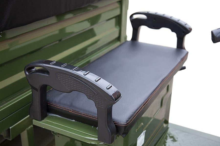 Для комфортной и устойчивой езды с тяжёлыми грузами установлены усиленные гидравлические амортизаторы спереди и пятилистовая рессорная подвеска сзади с подрессорником. Такая конструкция эффективно смягчает удары и обеспечивает равномерное распределение нагрузки. Тормозная система — барабанные тормоза спереди и сзади — отличается высокой надёжностью и долгим сроком службы, особенно при частых остановках под нагрузкой.