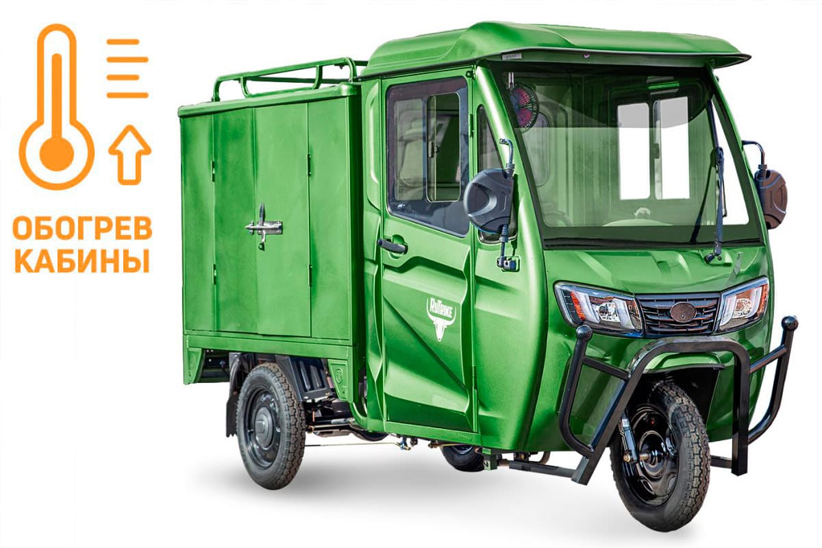 Rutrike КАРГО Кабина Дуал обогрев 1500 60V1000W — это усовершенствованный грузовой электротрицикл с закрытой кабиной, рассчитанный на интенсивную эксплуатацию в любых погодных условиях. Оснащённый двигателем мощностью 1000 Вт и задним приводом, он развивает скорость до 25 км/ч и способен перевозить увеличенную нагрузку до 750 кг. Это делает его идеальным выбором для логистики, строительства, коммунальных служб и складских комплексов, где требуется надёжность и высокая проходимость.