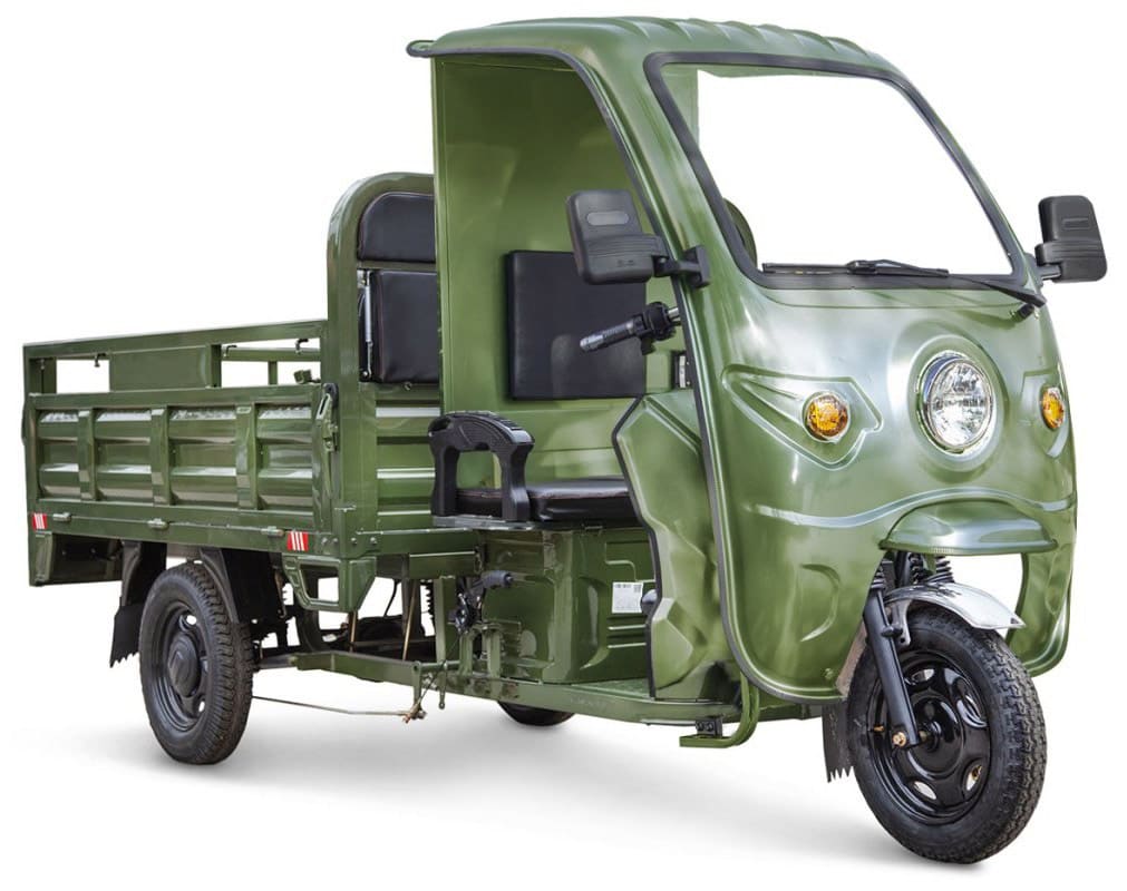 Трицикл оснащён металлической открытой кабиной с ветровым стеклом и стеклоочистителем, защищающей водителя от дождя, снега и ветра. Вся светотехника — светодиодная: передняя фара и задние фонари обеспечивают высокую видимость в темное время суток. Удобное расположение рычагов — ручной тормоз и пониженная передача вынесены на одну сторону руля — упрощает управление и повышает безопасность. Контроллер помещён в отдельный защищённый металлический отсек, что увеличивает срок службы электроники.