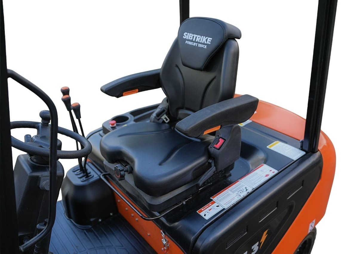 Операторское место оборудовано эргономичным плавающим сиденьем SIBTRIKE с амортизационной платформой, снижающей вибрации и нагрузку на позвоночник. Сиденье имеет анатомическую форму, регулируемые подлокотники, ремень безопасности и настройку под вес оператора, что обеспечивает комфорт и снижает утомляемость даже при длительной работе. Также в комплекте — ЖК-дисплей для контроля заряда, температуры и режимов работы.