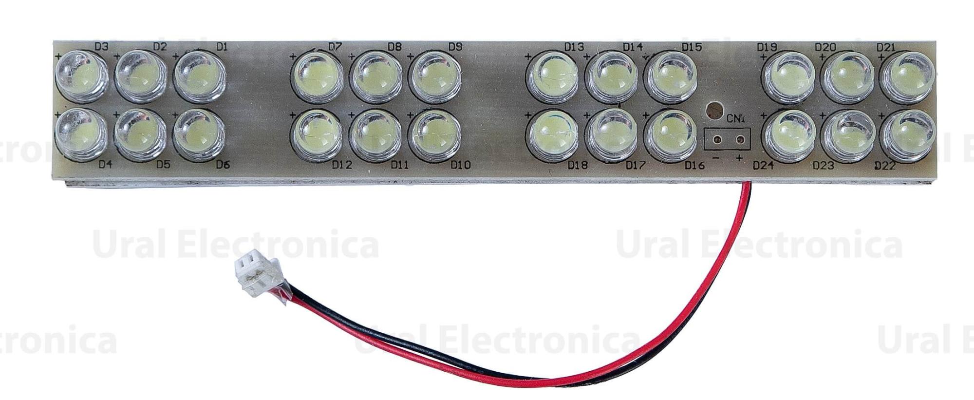 Предлагаемая ЛЕД фара поставляется в прочном прямоугольном корпусе и имеет четыре группы ярких светодиодов. На обратной стороне находится плата с закрепленным проводом, имеющим специальный разъем для подключения. Замена устройства возможна без обращения в сервисный центр. Для этого самокат надо отключить, затем аккуратно снять фару, установить на ее место новую. После подключения устройства самокат включается, проверяется функциональность новой светодиодной фары.