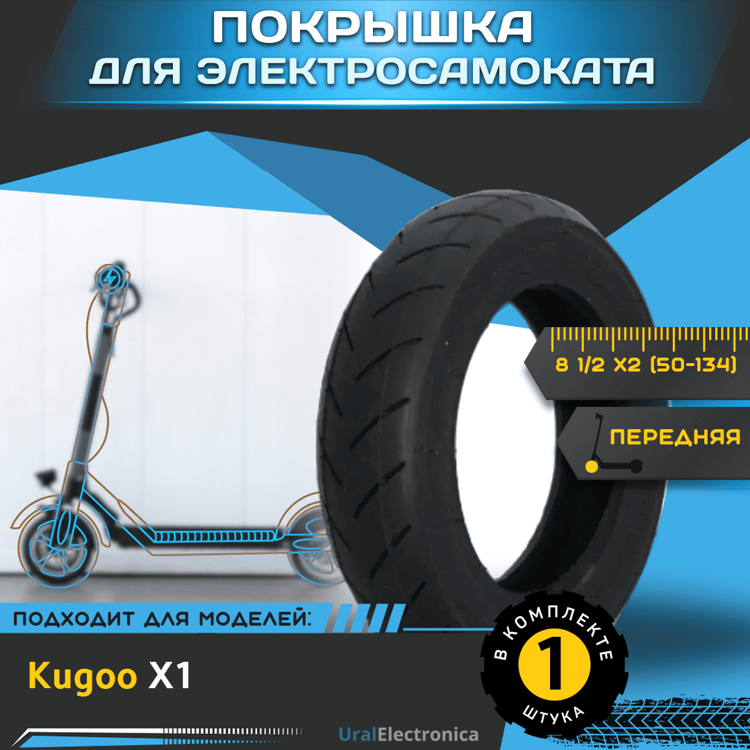 Покрышка 8 1/2 х2 (50-134), предназначена для электросамоката Kugoo X1 / Starway Z8/S9 / Maxspeed Mini 5, а также любого другого электросамоката с аналогичным размером. Резина износостойкая и отличается долгим сроком службы. Данная покрышка обеспечит уверенное сцепление с поверхностью. Возможность установки на переднее колесо.