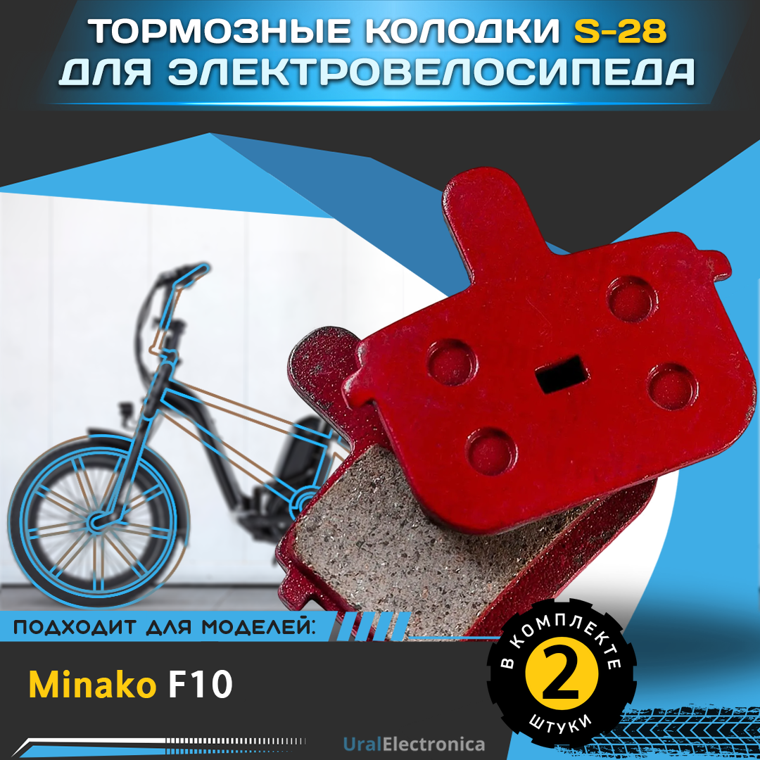 Тормозные колодки для дисковых тормозов электровелосипедов Minako F10 других электровелосипедов имеющих такие же колодки. Комплект на одно колесо состоит из 2шт. Тормозные колодки предназначены для замены комплектных. Колодки выполнены из качественных материалов, что обеспечивает долгий срок эксплуатации. Тормозные колодки имеют в своем составе медь, что делает торможение более эффективным