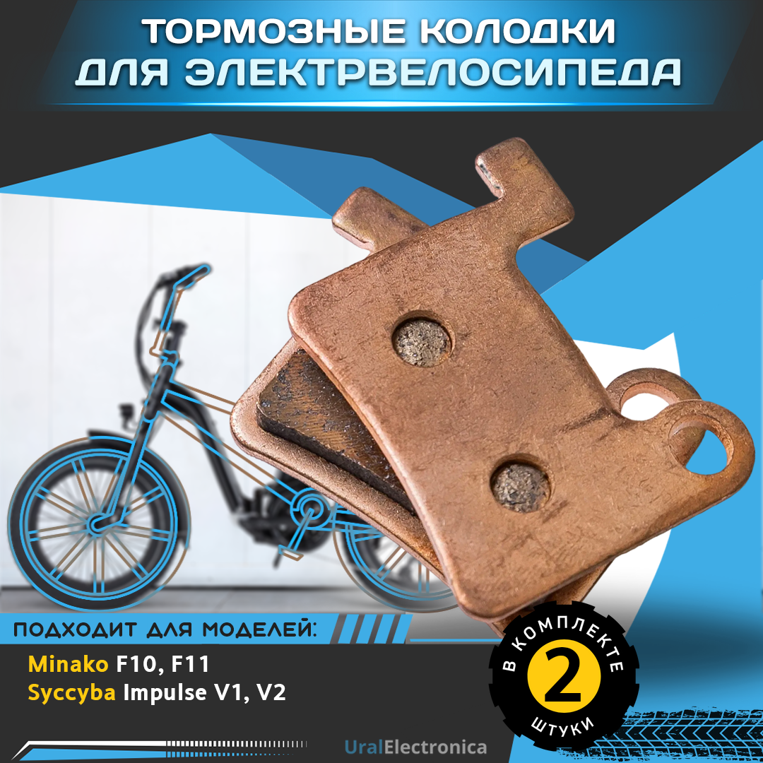 Тормозные колодки гидравлического тормоза для электровелосипеда Minako F10/F11, Syccyba F10/F11/Impulse v1, v2 и других электровелосипедов, имеющих тормозные колодки схожего типа. Комплект на одно колесо состоит из 2шт. Тормозные колодки предназначены для замены комплектных. Колодки выполнены из качественных материалов, что обеспечивает долгий срок эксплуатации. Тормозные колодки имеют в своем составе медь, что делает торможение более эффективным