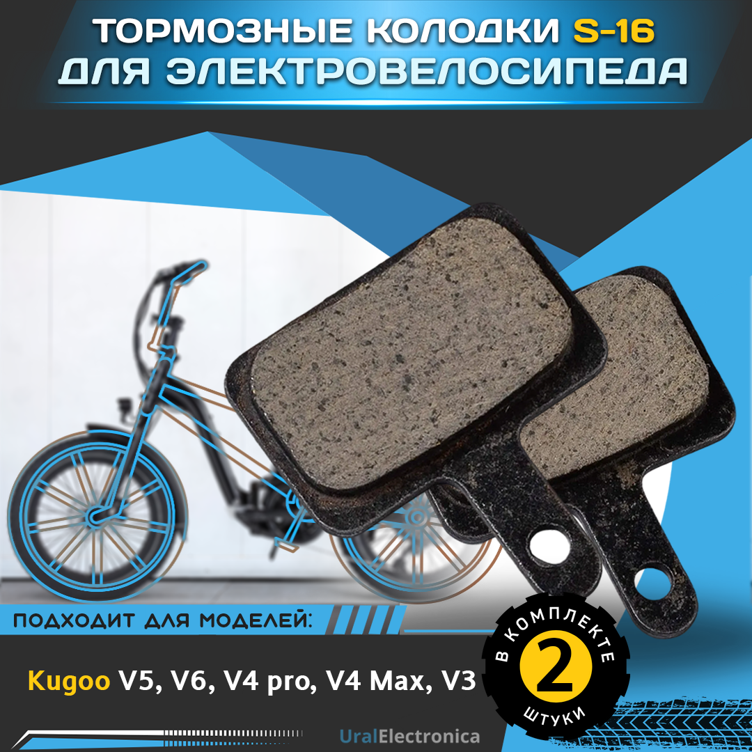 Тормозные колодки S-16 для электровелосипеда Kugoo V5/V6/V4 pro/ V4 Max/ V3, White Siberia SLAV PRO/CAMRY ALLROAD/LIGHT/CAMRY X и других электровелосипедов имеющих ширину тормозной колодки 30 мм. Комплект на одно колесо состоит из 2шт. Тормозные колодки предназначены для замены комплектных. Колодки выполнены из качественных материалов, что обеспечивает долгий срок эксплуатации. Тормозные колодки имеют в своем составе медь, что делает торможение более эффективным
