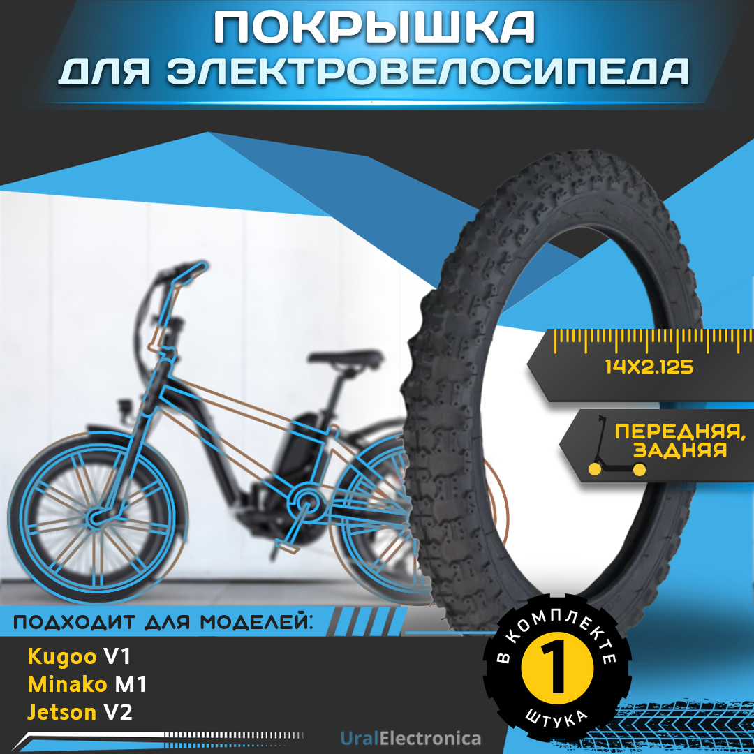 Покрышка 14x2.125, предназначена для электровелосипеда Kugoo V1 / Minako M1 / Jetson V2, а также любого другого электровелосипеда с аналогичным размером. Резина износостойкая и отличается долгим сроком службы. Данная покрышка обеспечит уверенное сцепление с поверхностью. Возможность установки на переднее и заднее колесо.